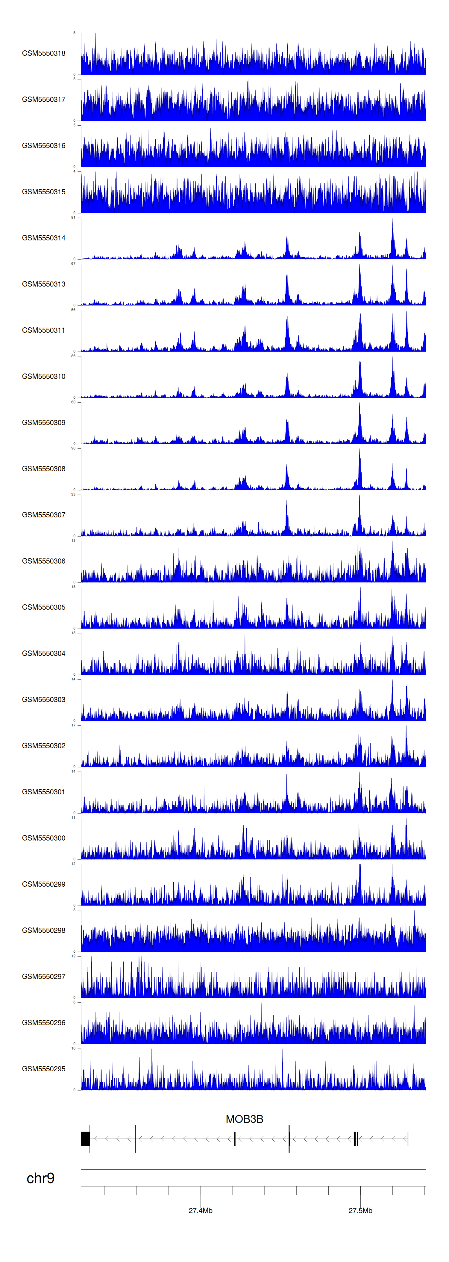 > Dataset: GSE143026 - MOB3B peak across samples