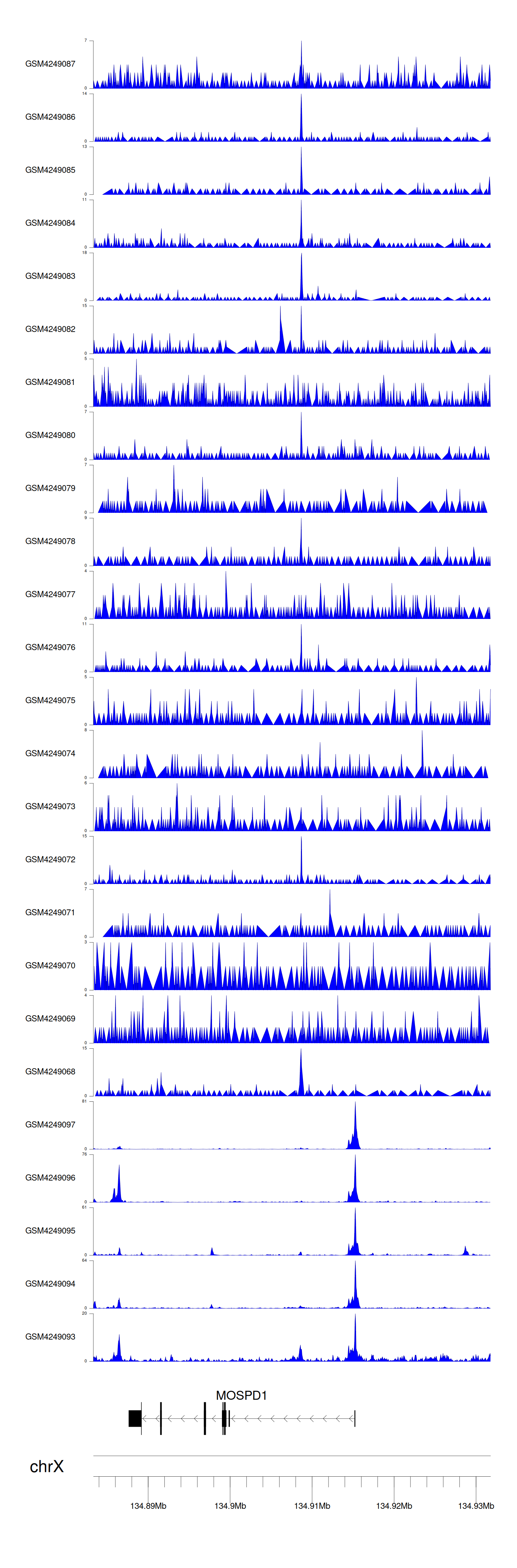 > Dataset: GSE143026 - MOSPD1 peak across samples