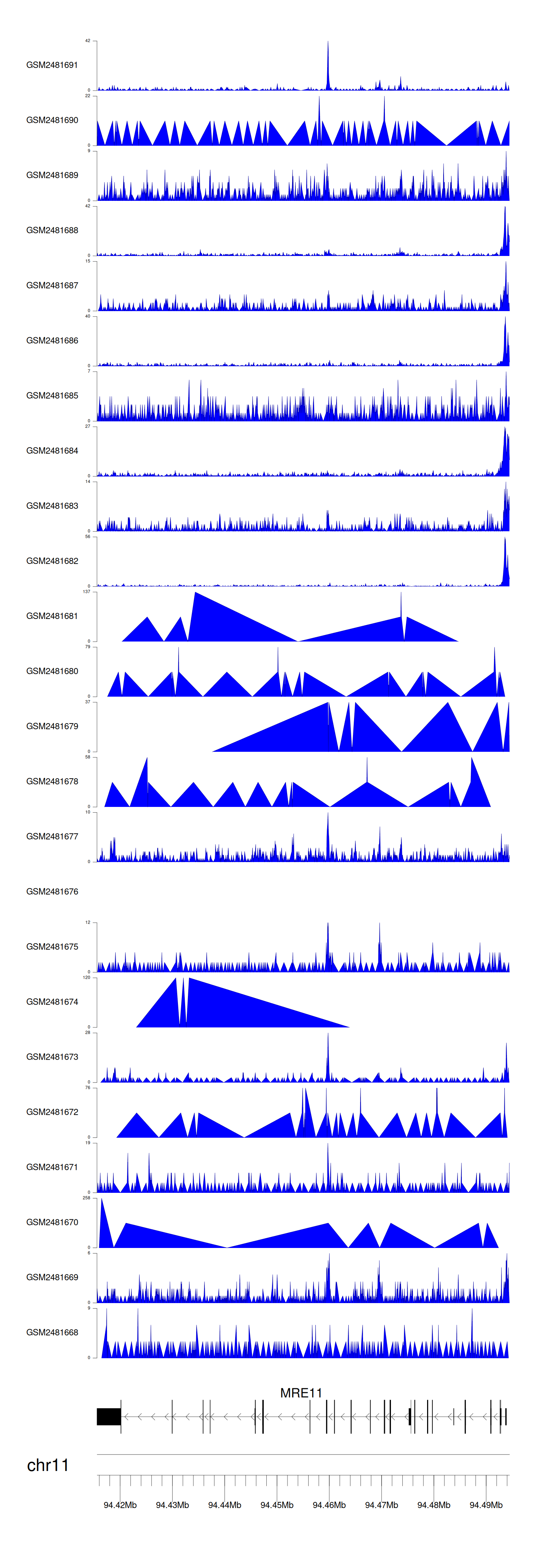 This gene encodes a nuclear protein involved in homologous recombination, telomere length maintenance, and DNA double-strand break repair. By itself, the protein has 3' to 5' exonuclease activity and endonuclease activity. The protein forms a complex with the RAD50 homolog; this complex is required for nonhomologous joining of DNA ends and possesses increased single-stranded DNA endonuclease and 3' to 5' exonuclease activities. In conjunction with a DNA ligase, this protein promotes the joining of noncomplementary ends in vitro using short homologies near the ends of the DNA fragments. This gene has a pseudogene on chromosome 3. Alternative splicing of this gene results in two transcript variants encoding different isoforms. [provided by RefSeq, Jul 2008] |