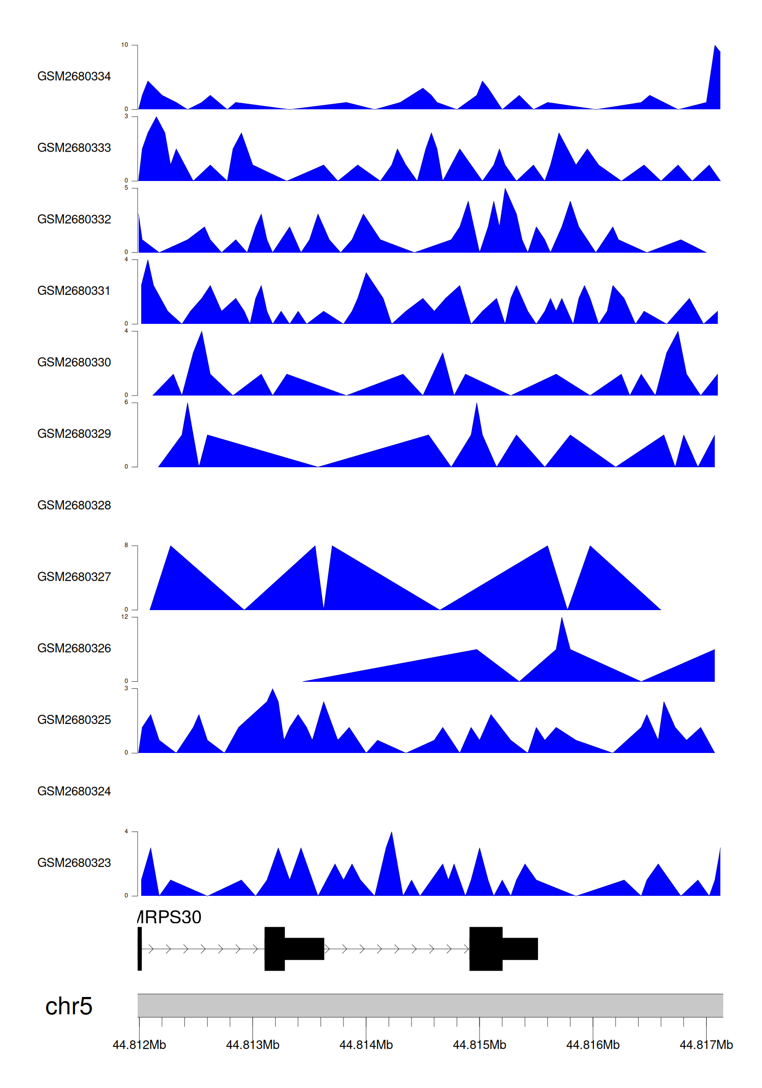> Dataset: GSE100400 - MRPS30 peak across samples