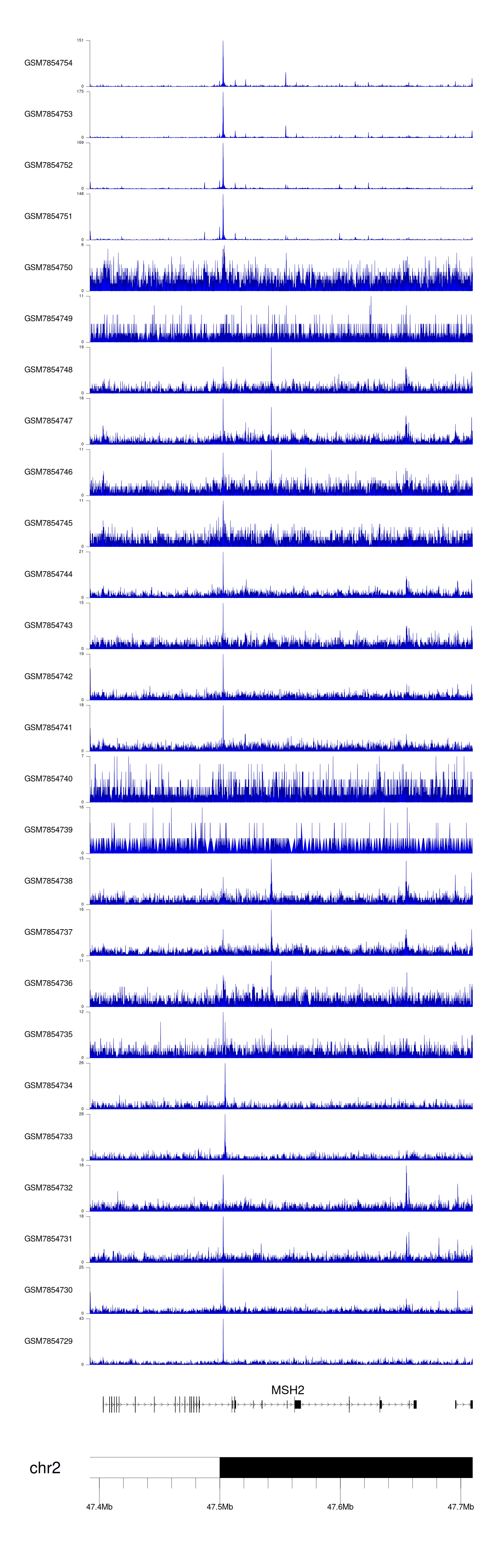 > Dataset: GSE198334 - MSH2 peak across samples