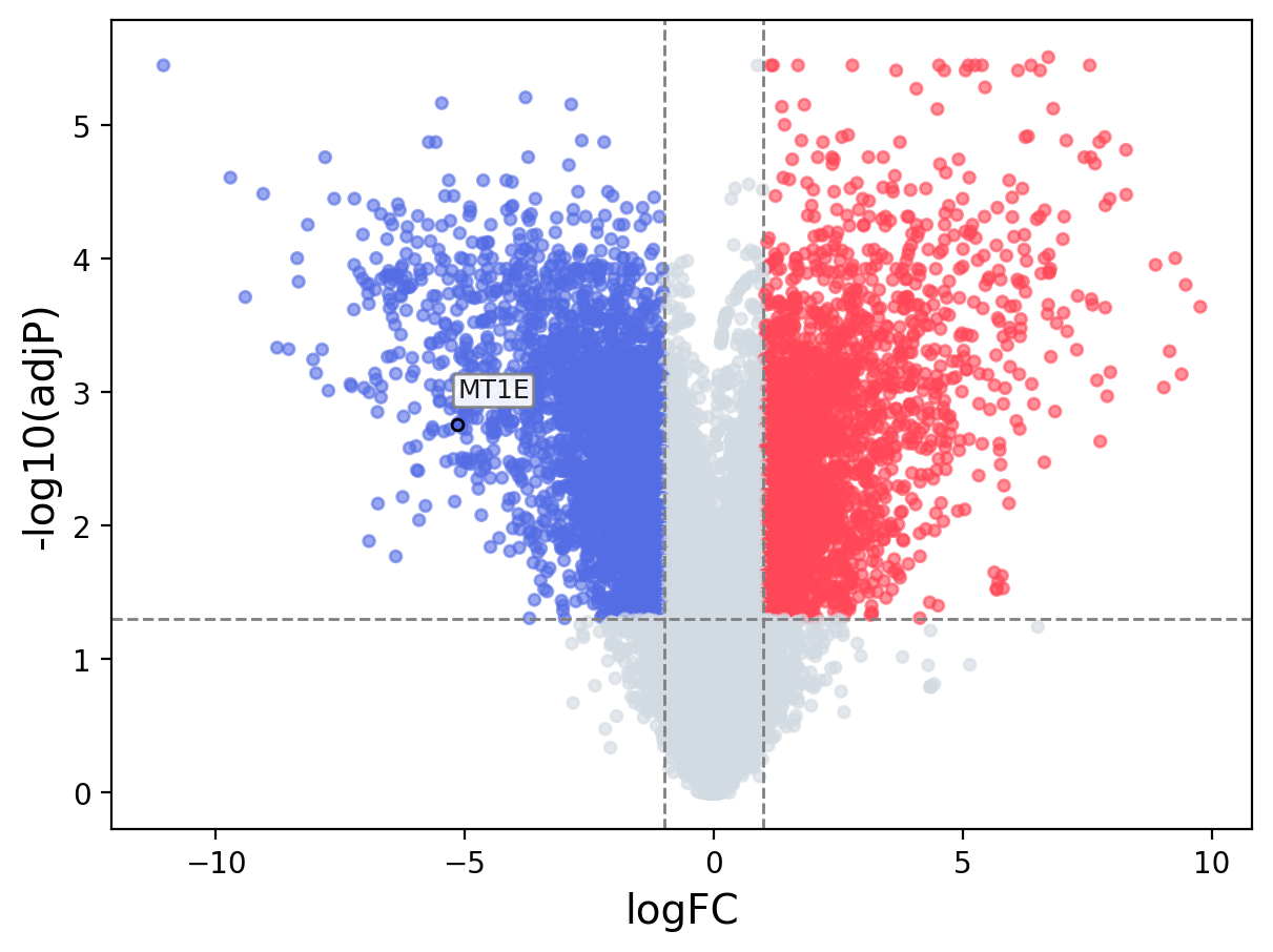 When the query gene is differentially changed in the dataset, a volcano/bar plot will be displayed.