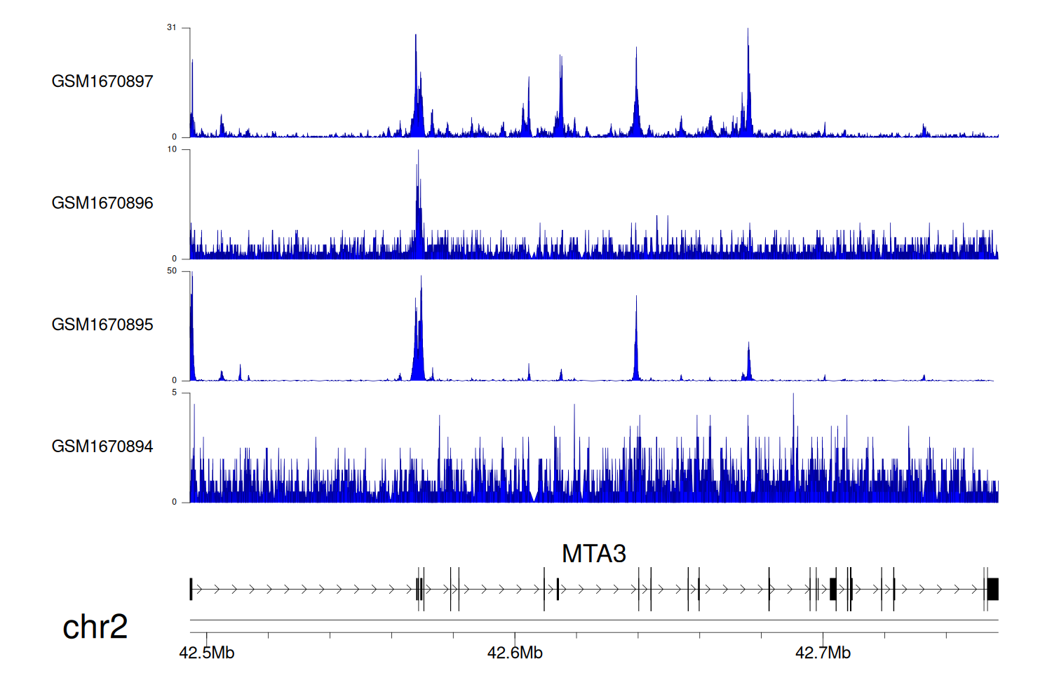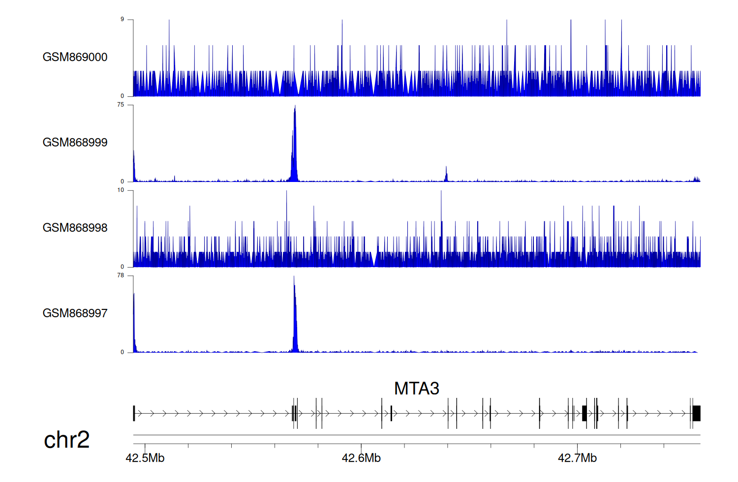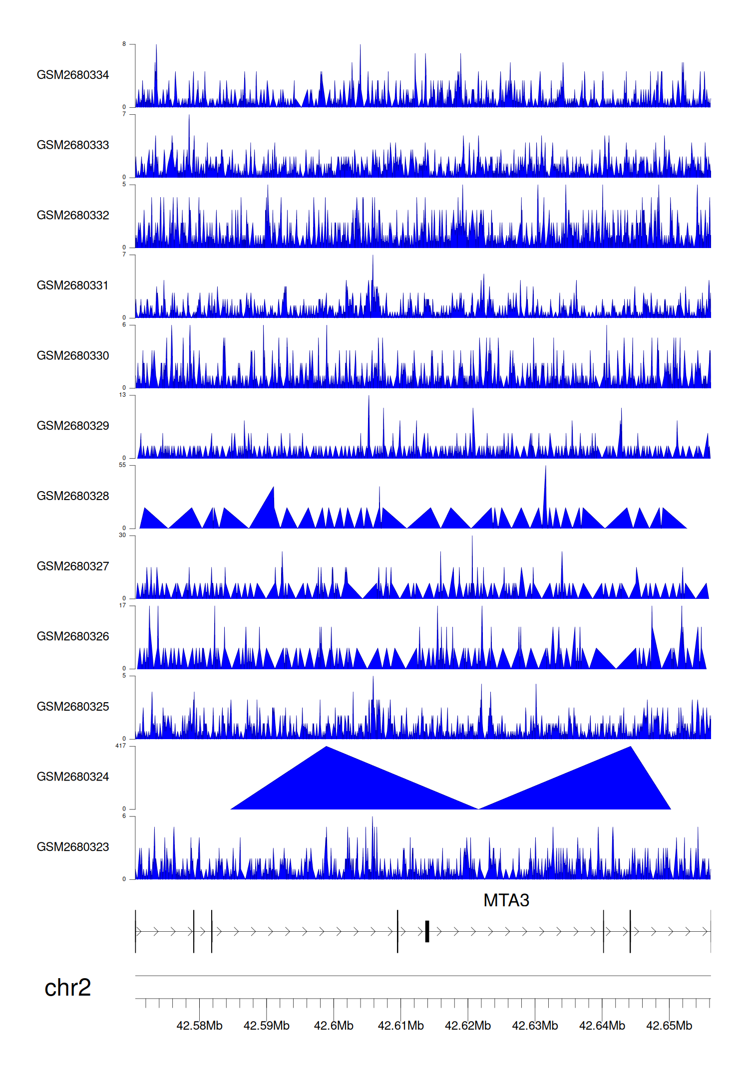 > Dataset: GSE68402 - MTA3 peak across samples