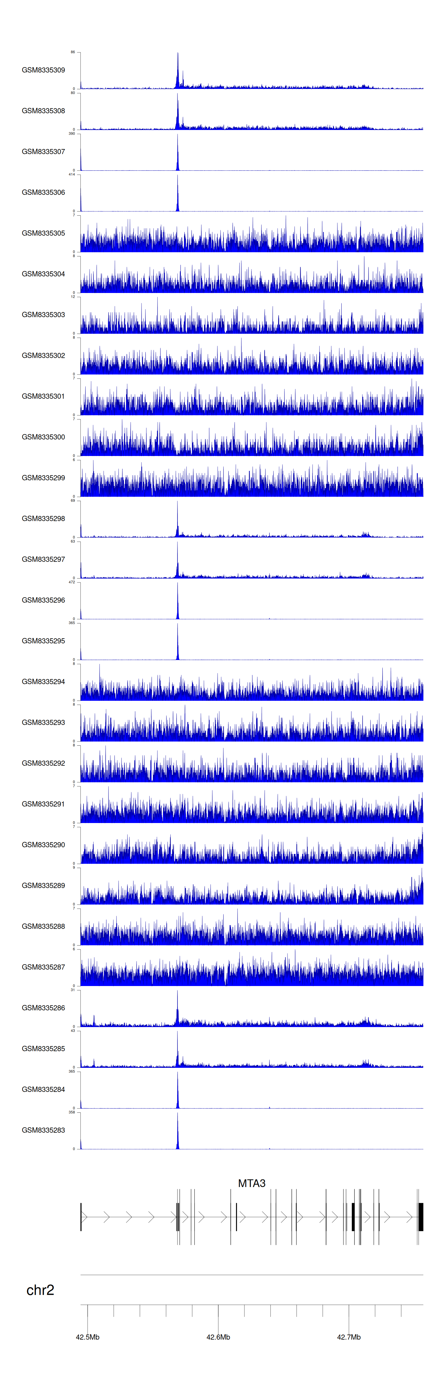 > Dataset: GSE270130 - MTA3 peak across samples