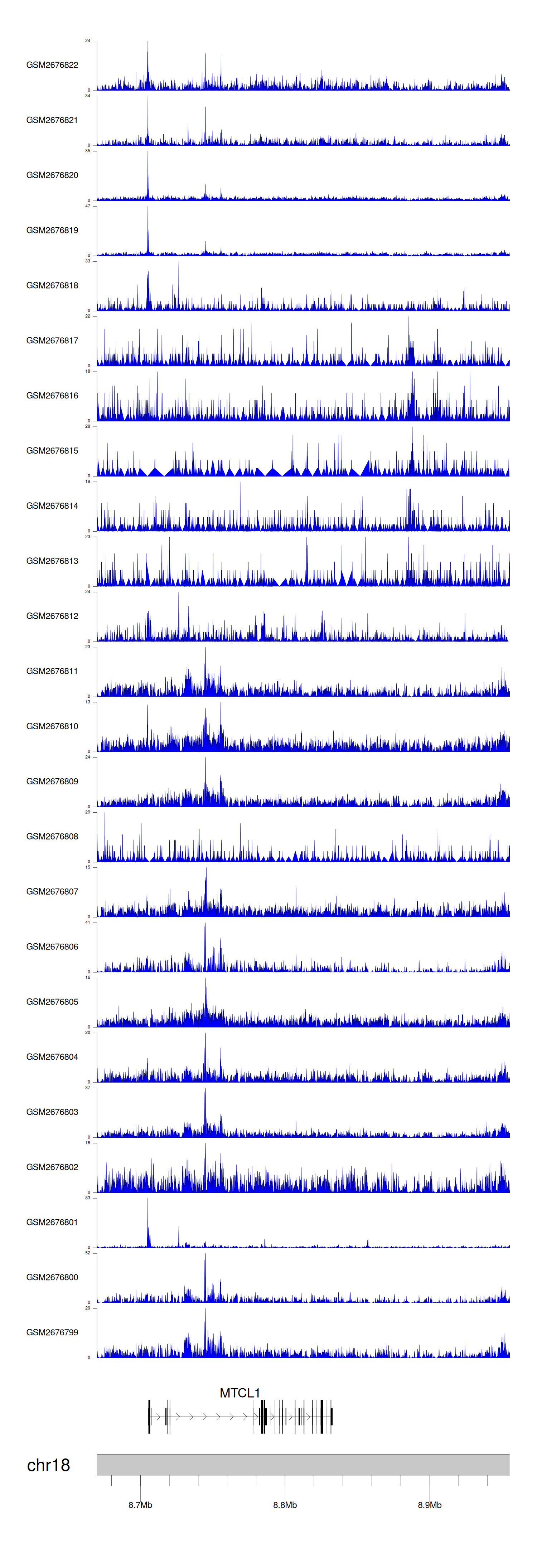 > Dataset: GSE30738 - MTCL1 peak across samples