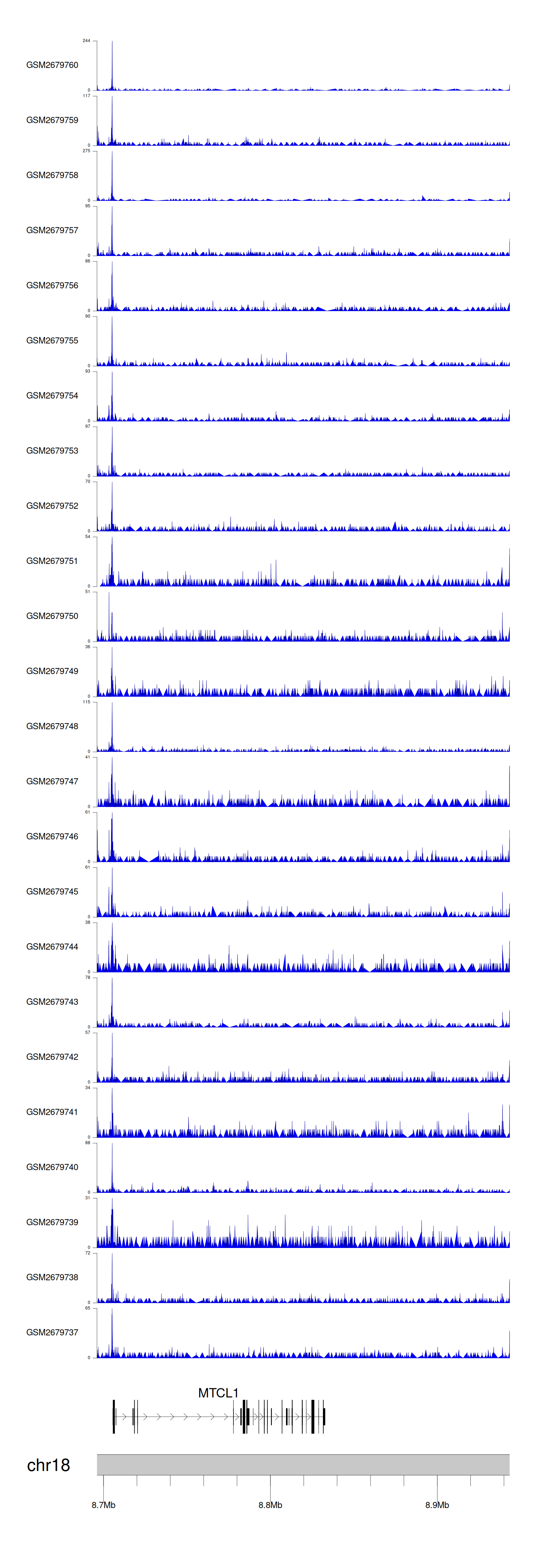 > Dataset: GSE100376 - MTCL1 peak across samples