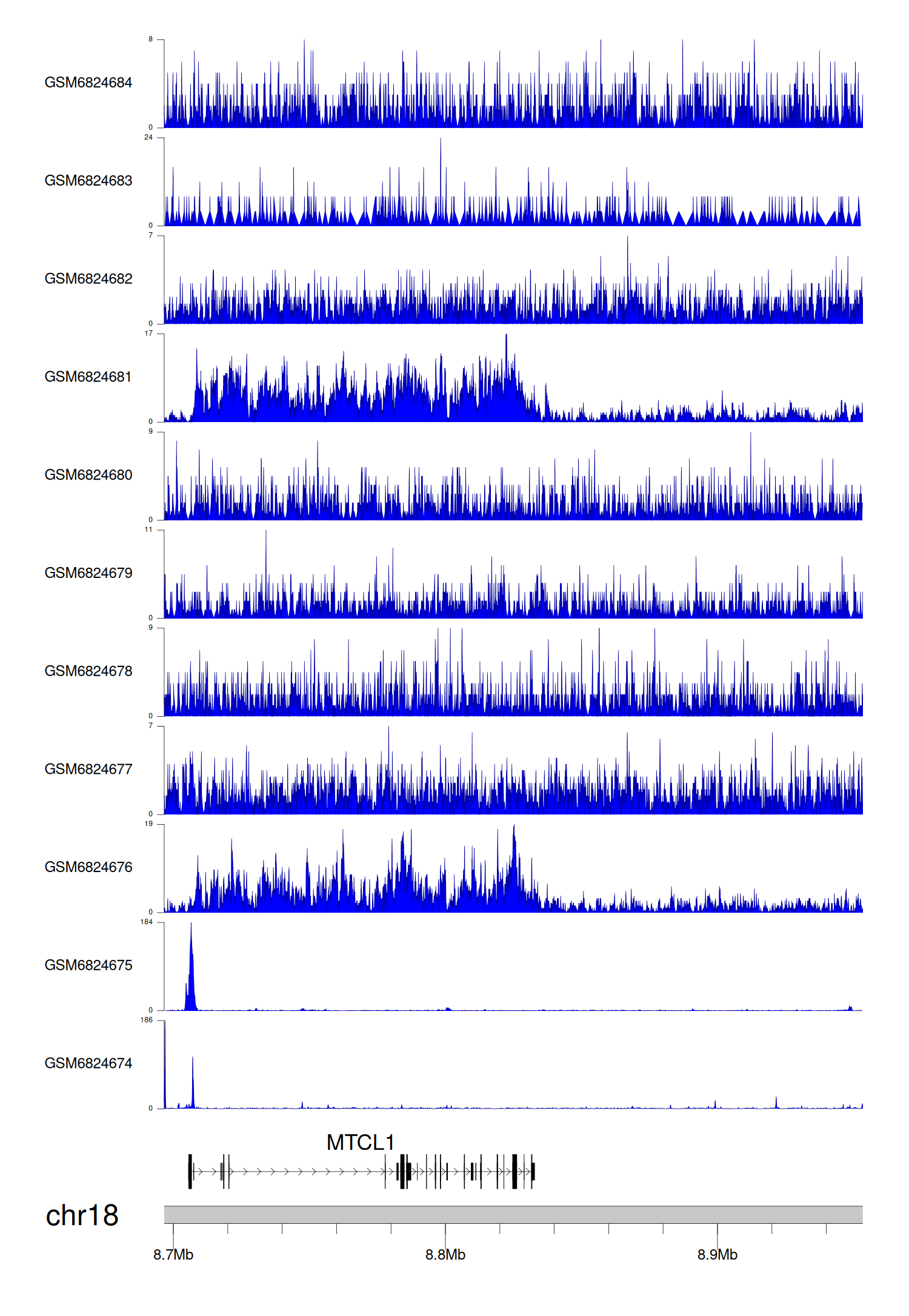 > Dataset: GSE144329 - MTCL1 peak across samples