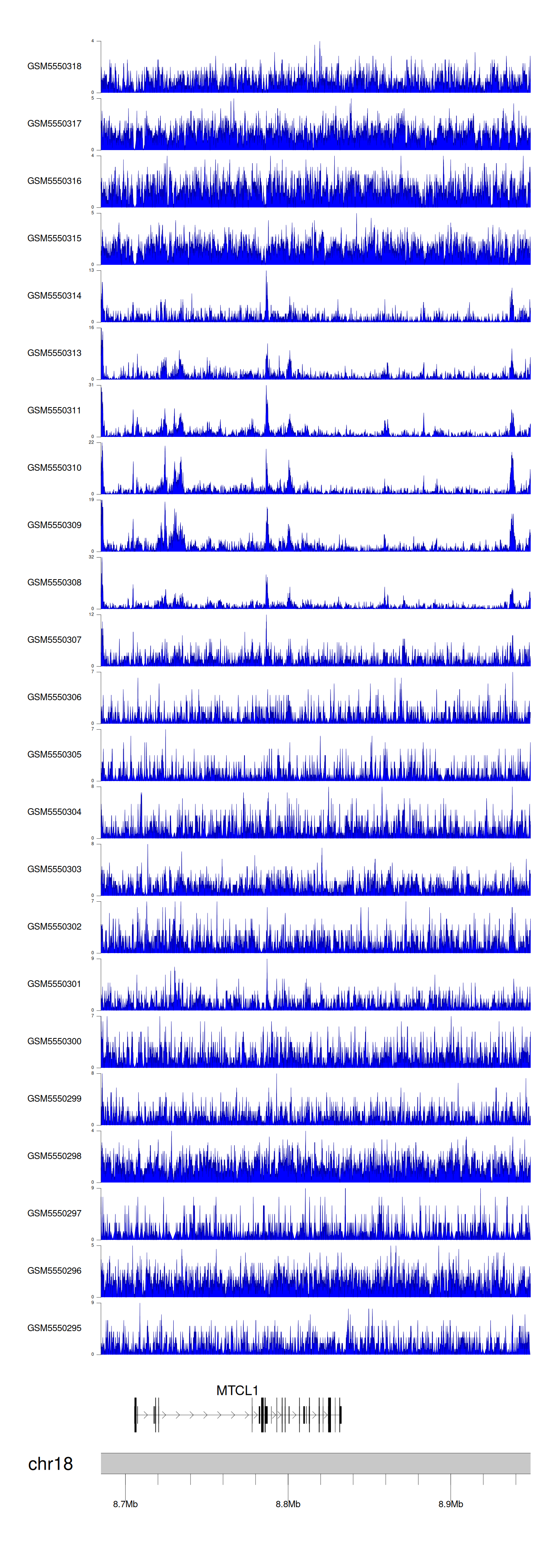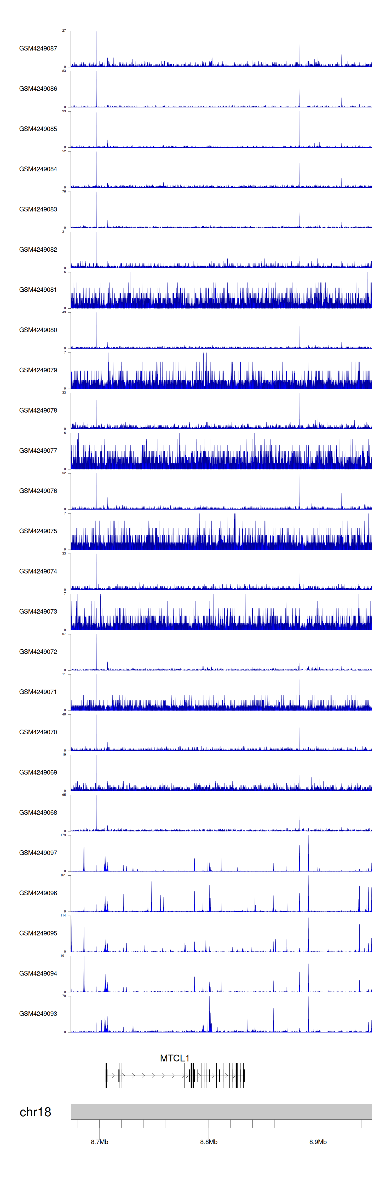 > Dataset: GSE143026 - MTCL1 peak across samples