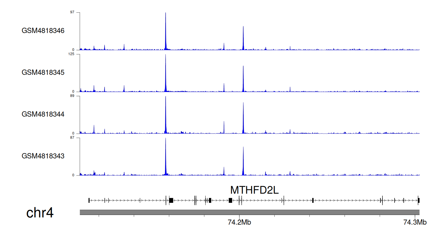 > Dataset: GSE131257 - MTHFD2L peak across samples