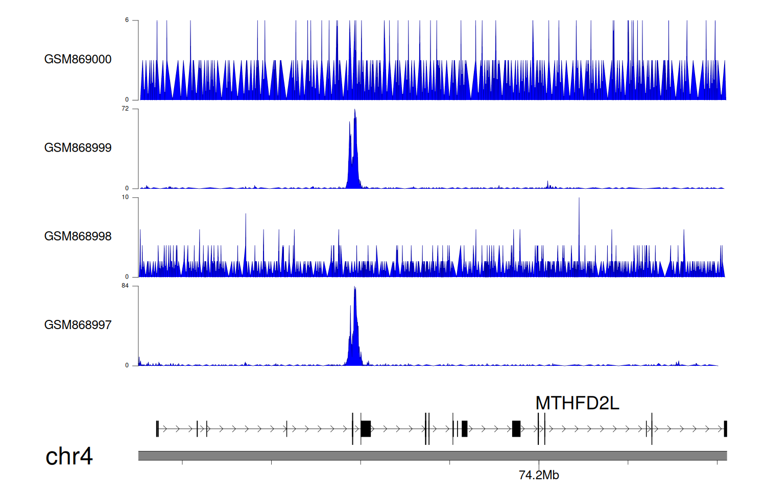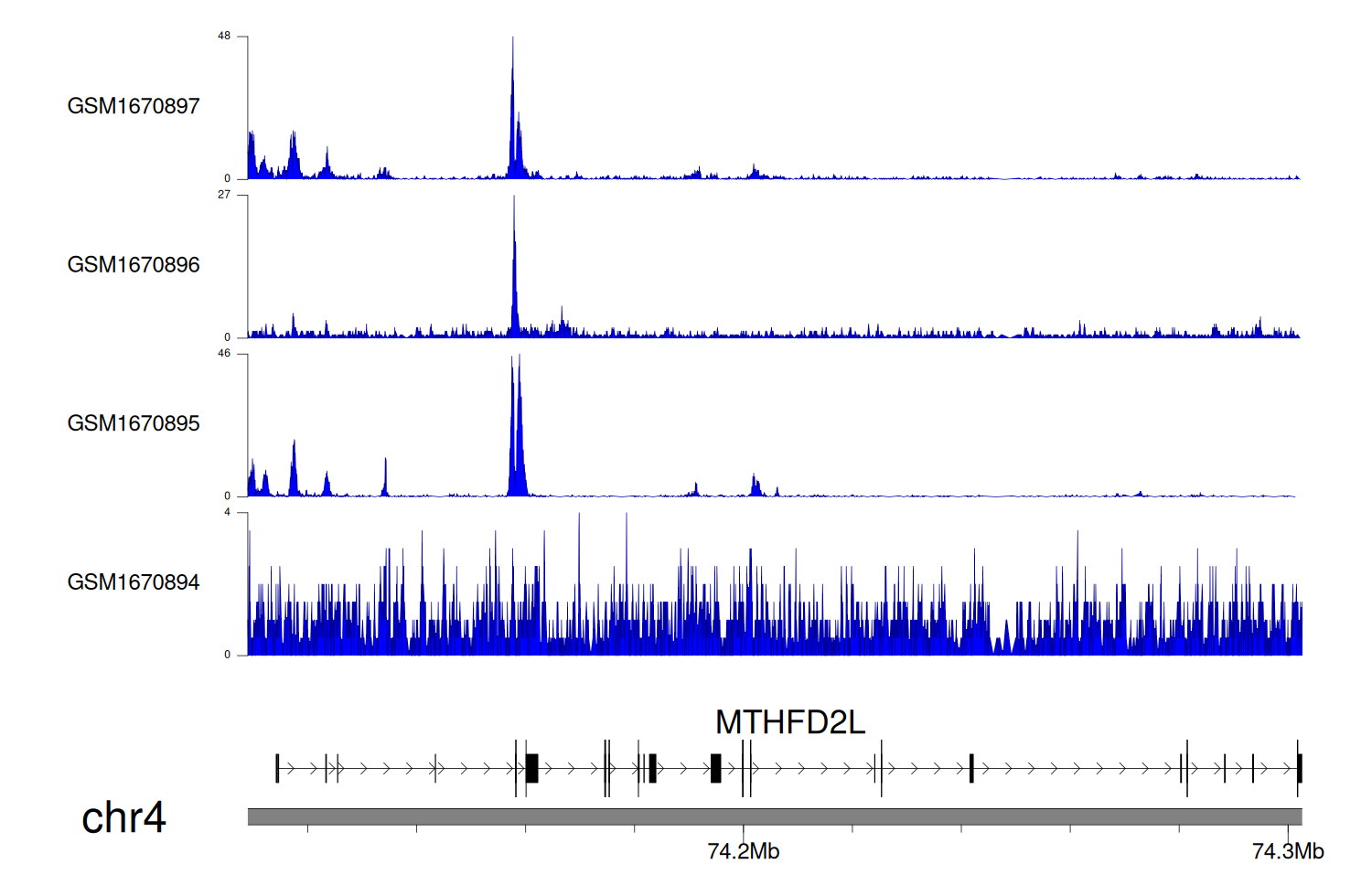 > Dataset: GSE64877 - MTHFD2L peak across samples