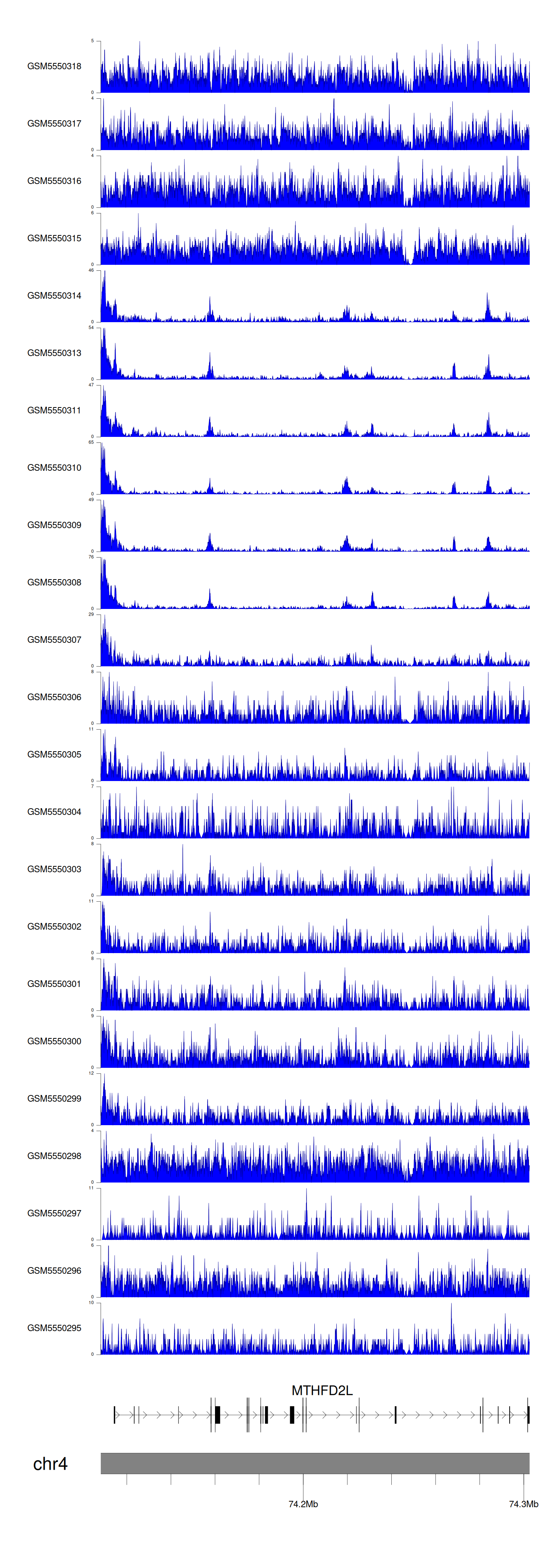 > Dataset: GSE143026 - MTHFD2L peak across samples