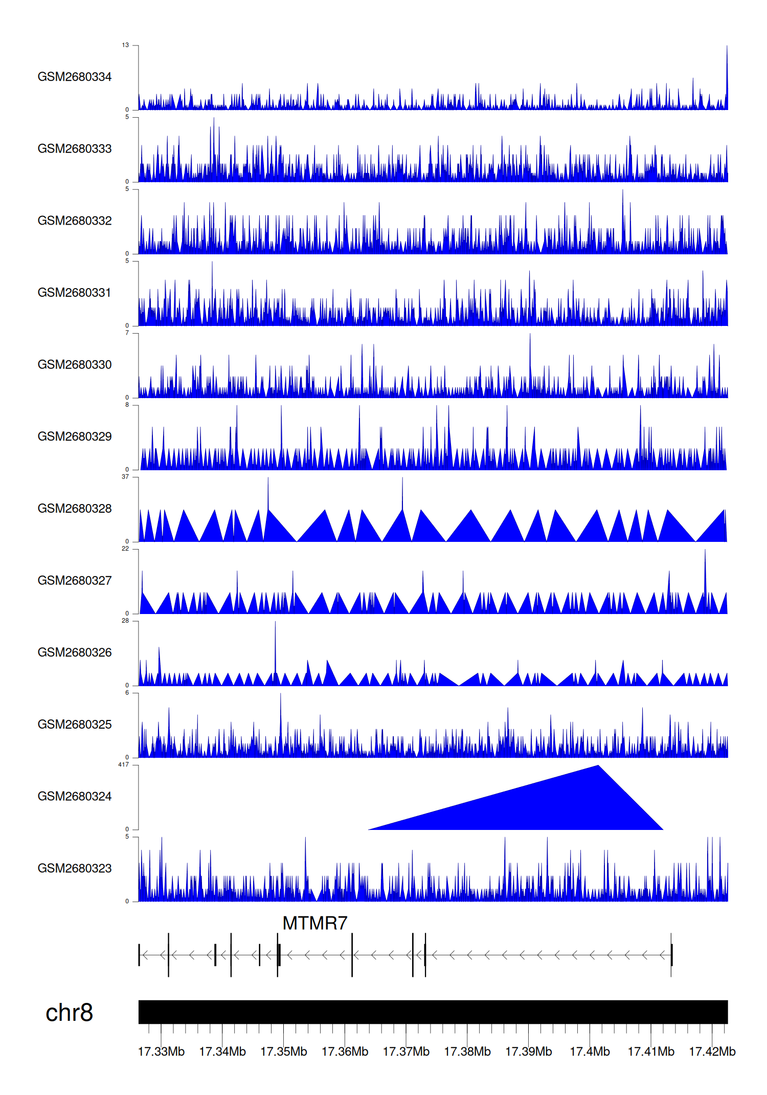 > Dataset: GSE100400 - MTMR7 peak across samples
