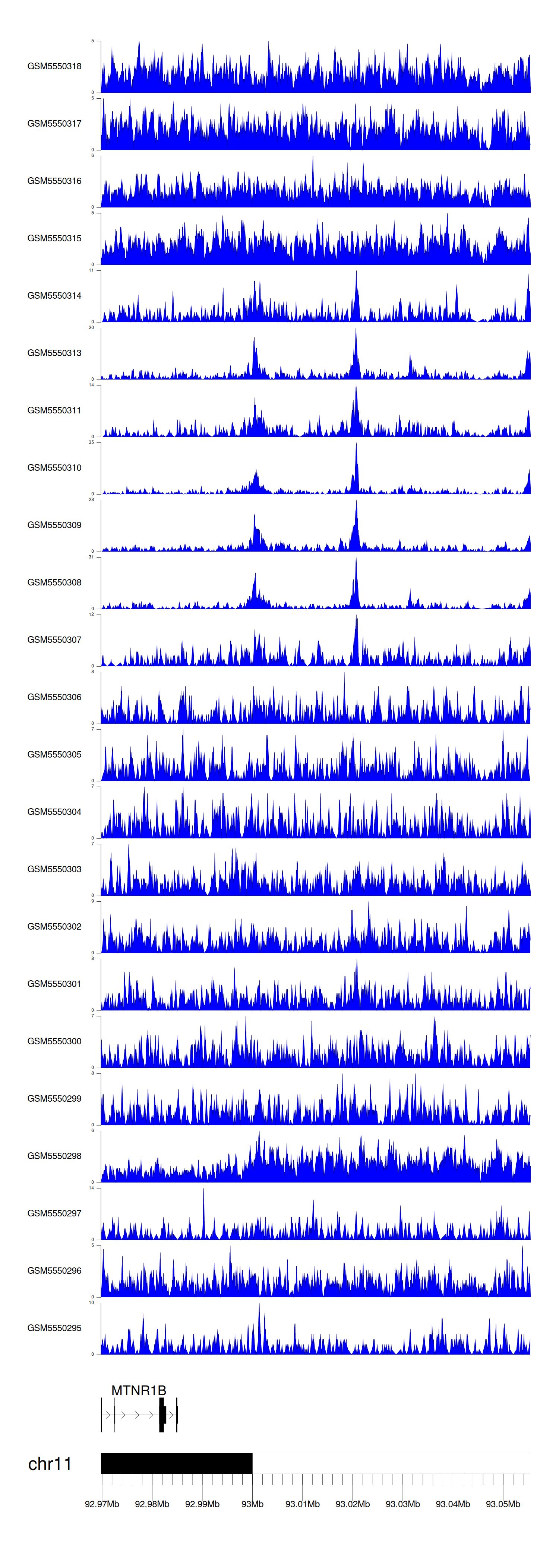 > Dataset: GSE143026 - MTNR1B peak across samples