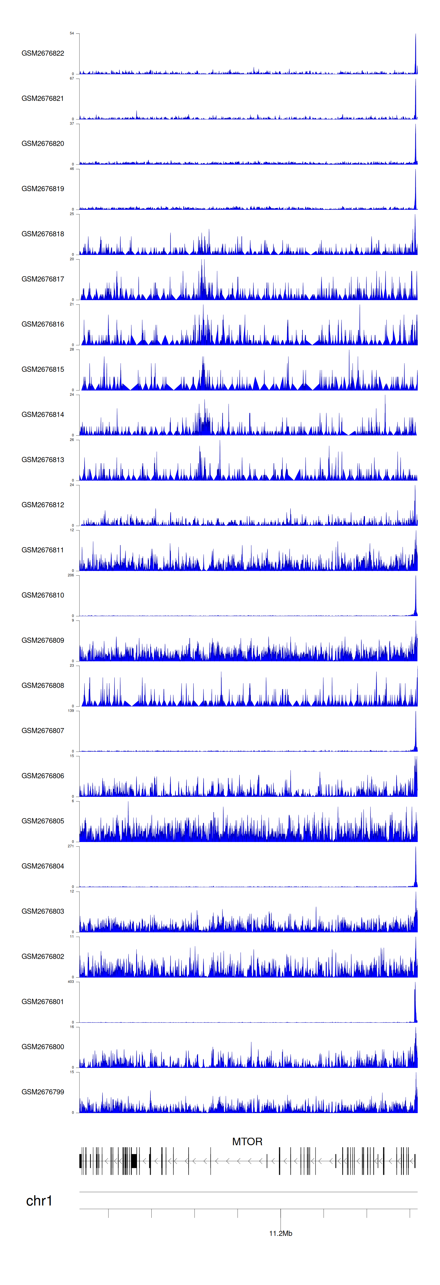 > Dataset: GSE100376 - MTOR peak across samples