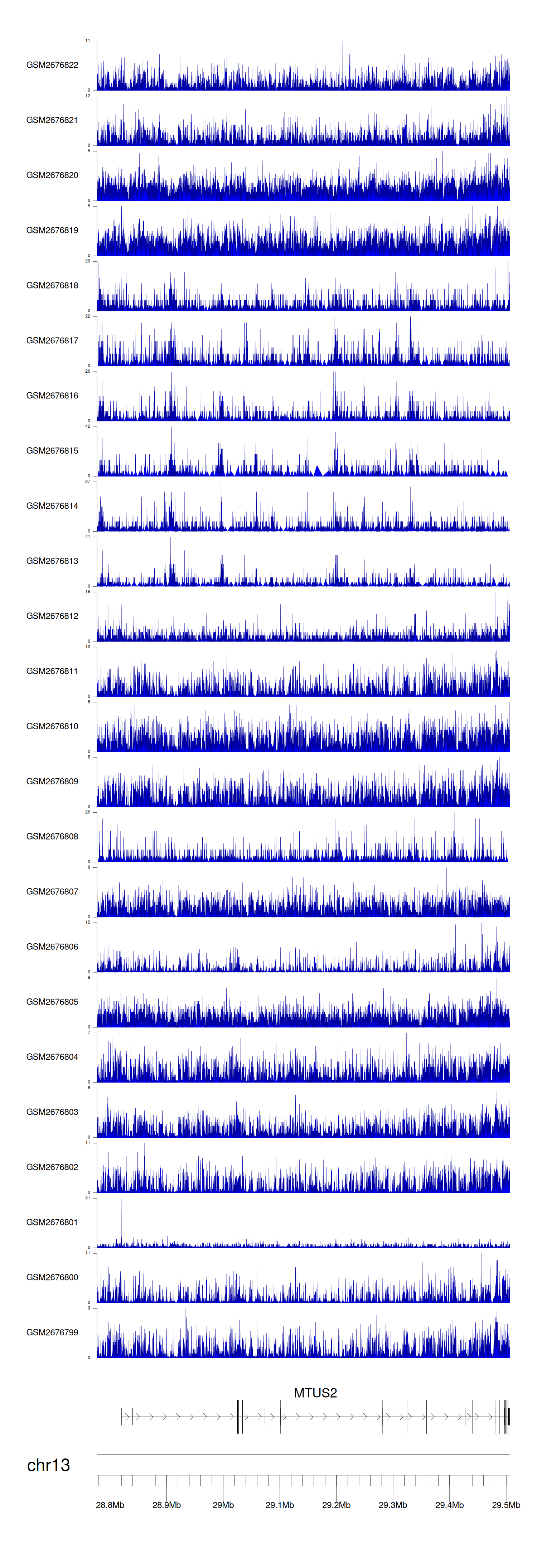 > Dataset: GSE100266 - MTUS2 peak across samples