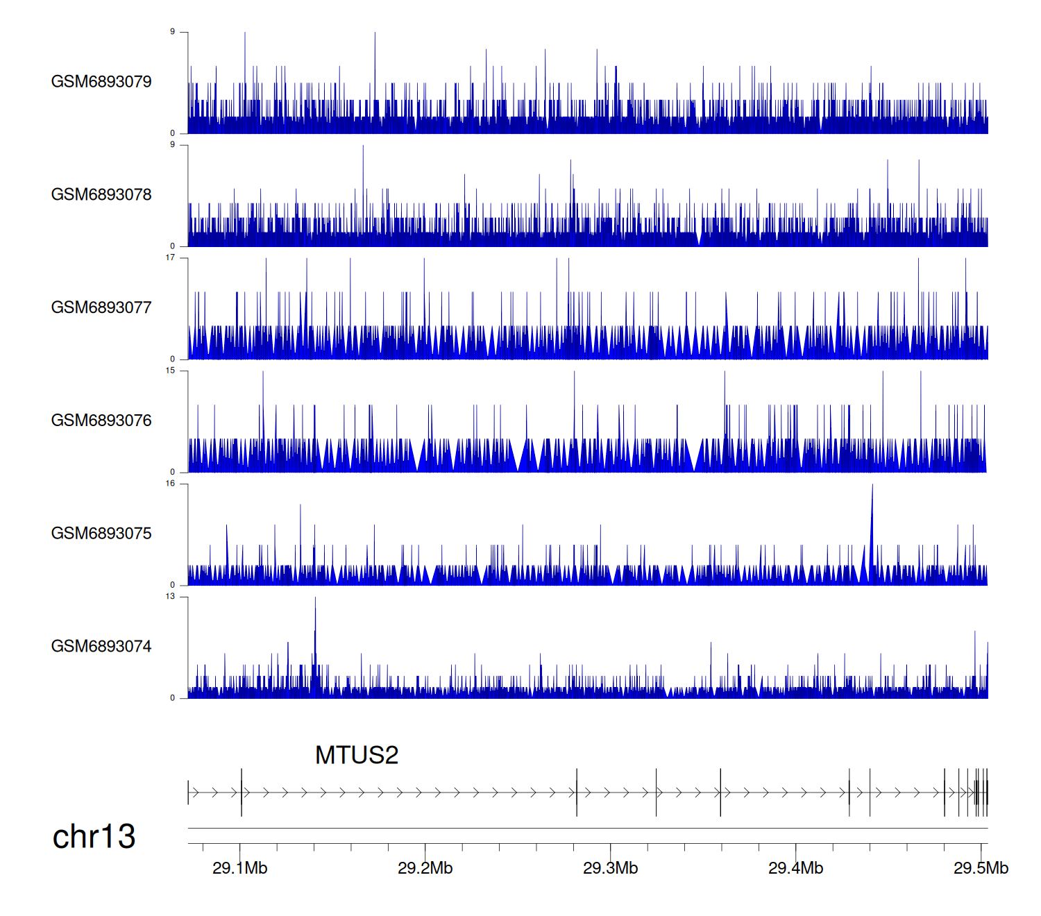 > Dataset: GSE220859 - MTUS2 peak across samples