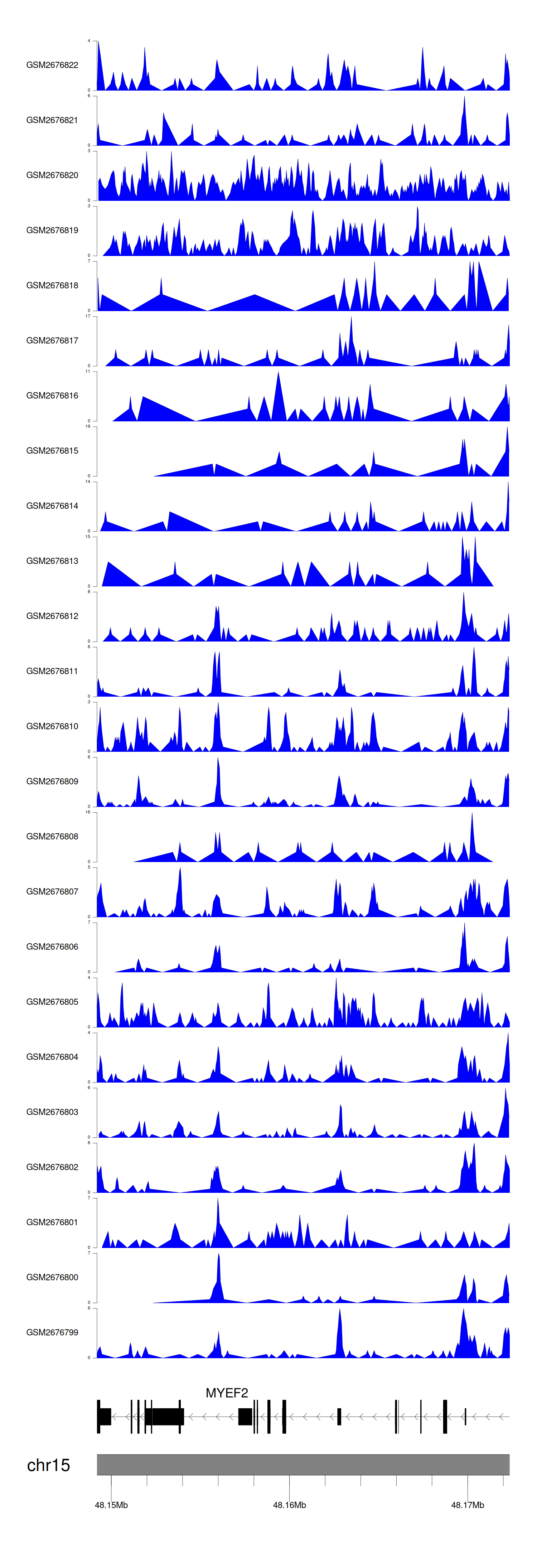 > Dataset: GSE165703 - MYEF2 peak across samples