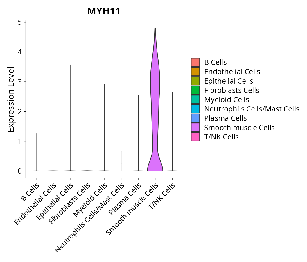 Summary The protein encoded by this gene is a smooth muscle myosin belonging to the myosin heavy chain family. The gene product is a subunit of a hexameric protein that consists of two heavy chain subunits and two pairs of non-identical light chain subunits. It functions as a major contractile protein, converting chemical energy into mechanical energy through the hydrolysis of ATP. A chromosomal rearrangement involving this gene is associated with acute myeloid leukemia of the M4Eo subtype. Mutations in this gene are associated with visceral myopathy, megacystis-microcolon-intestinal hypoperistalsis syndrome 2, and familial thoracic aortic aneurysm 4. [provided by RefSeq, May 2022]