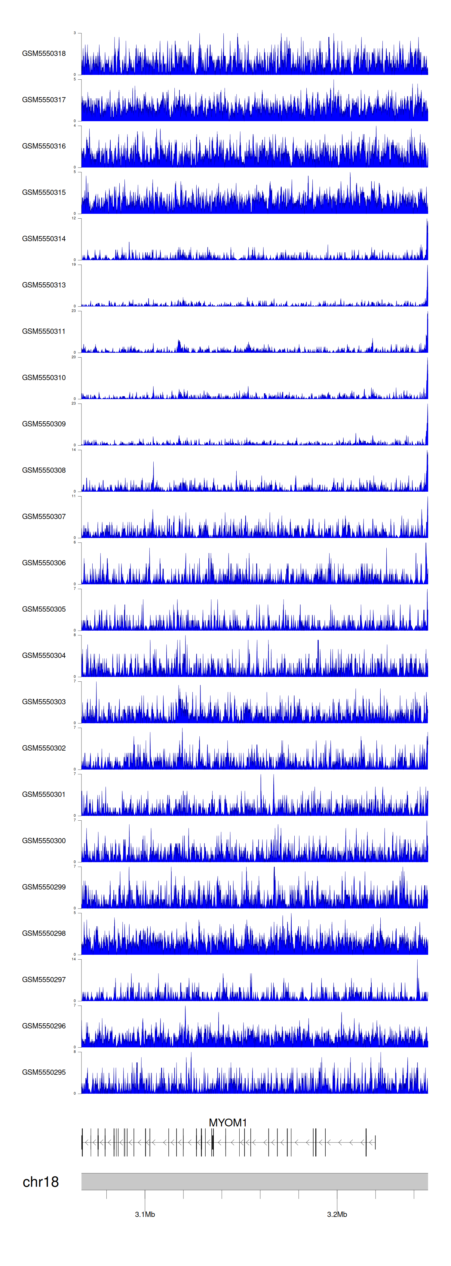 > Dataset: GSE183048 - MYOM1 peak across samples