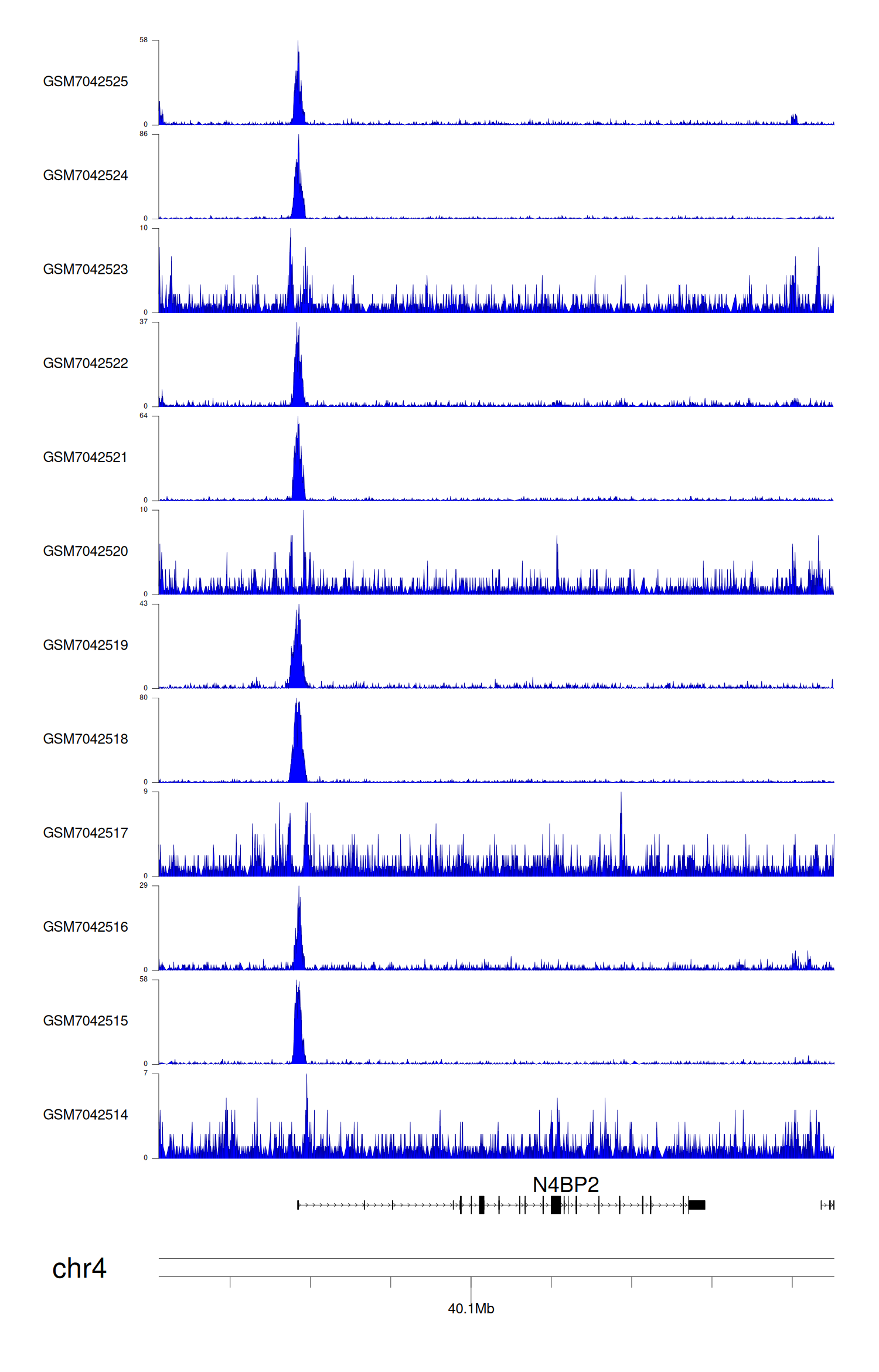 > Dataset: GSE225248 - N4BP2 peak across samples