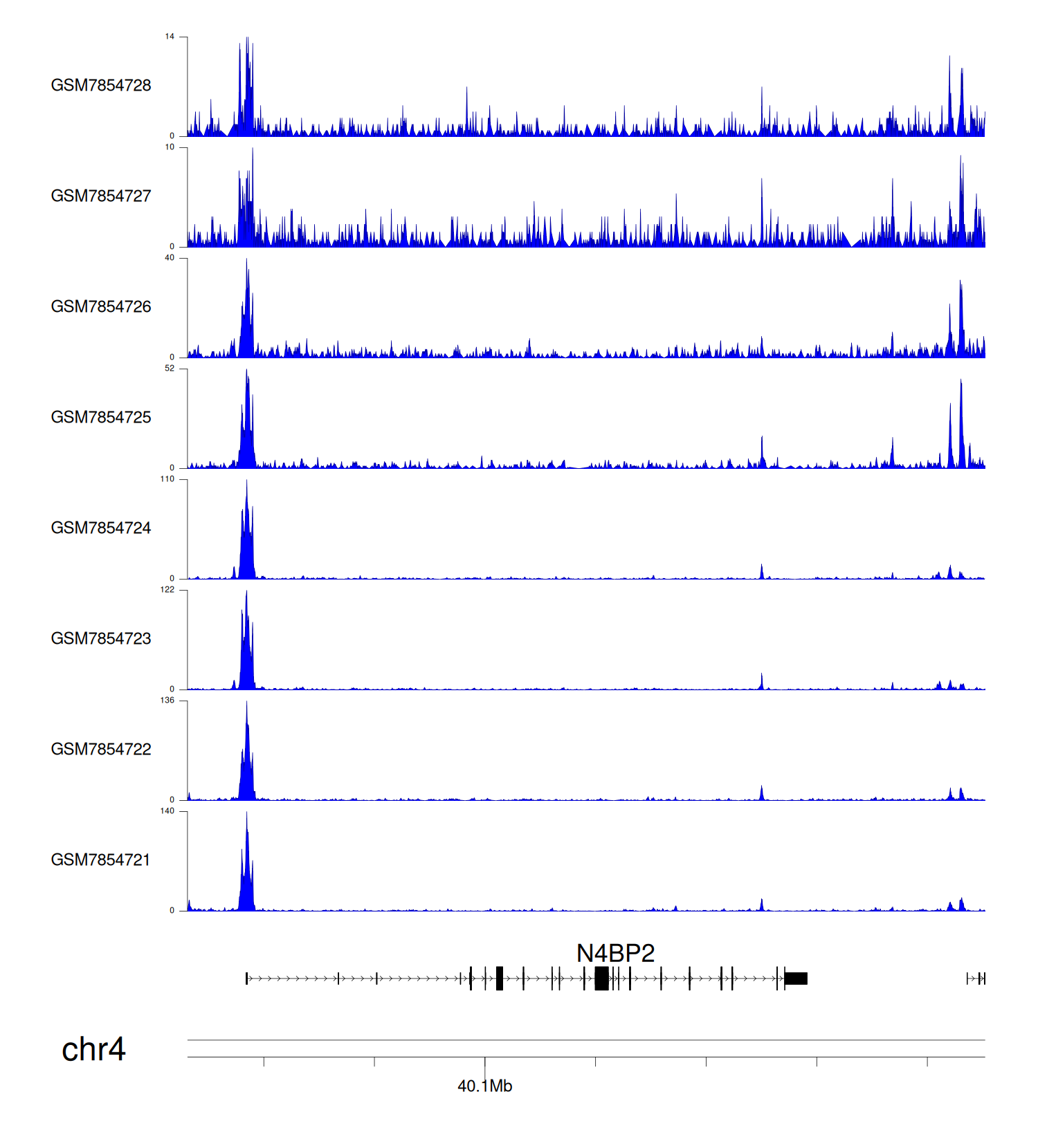 > Dataset: GSE246060 - N4BP2 peak across samples