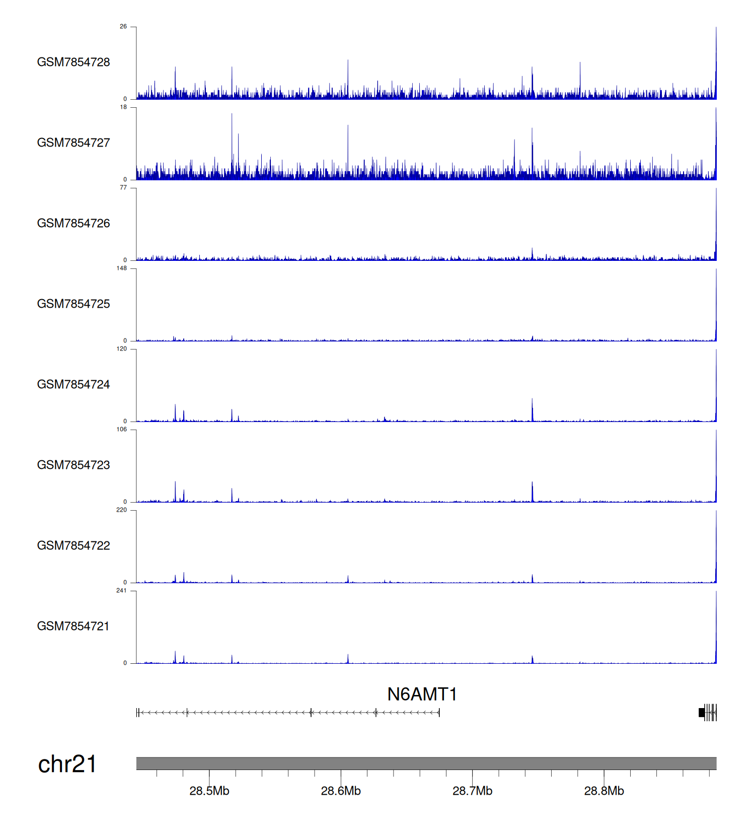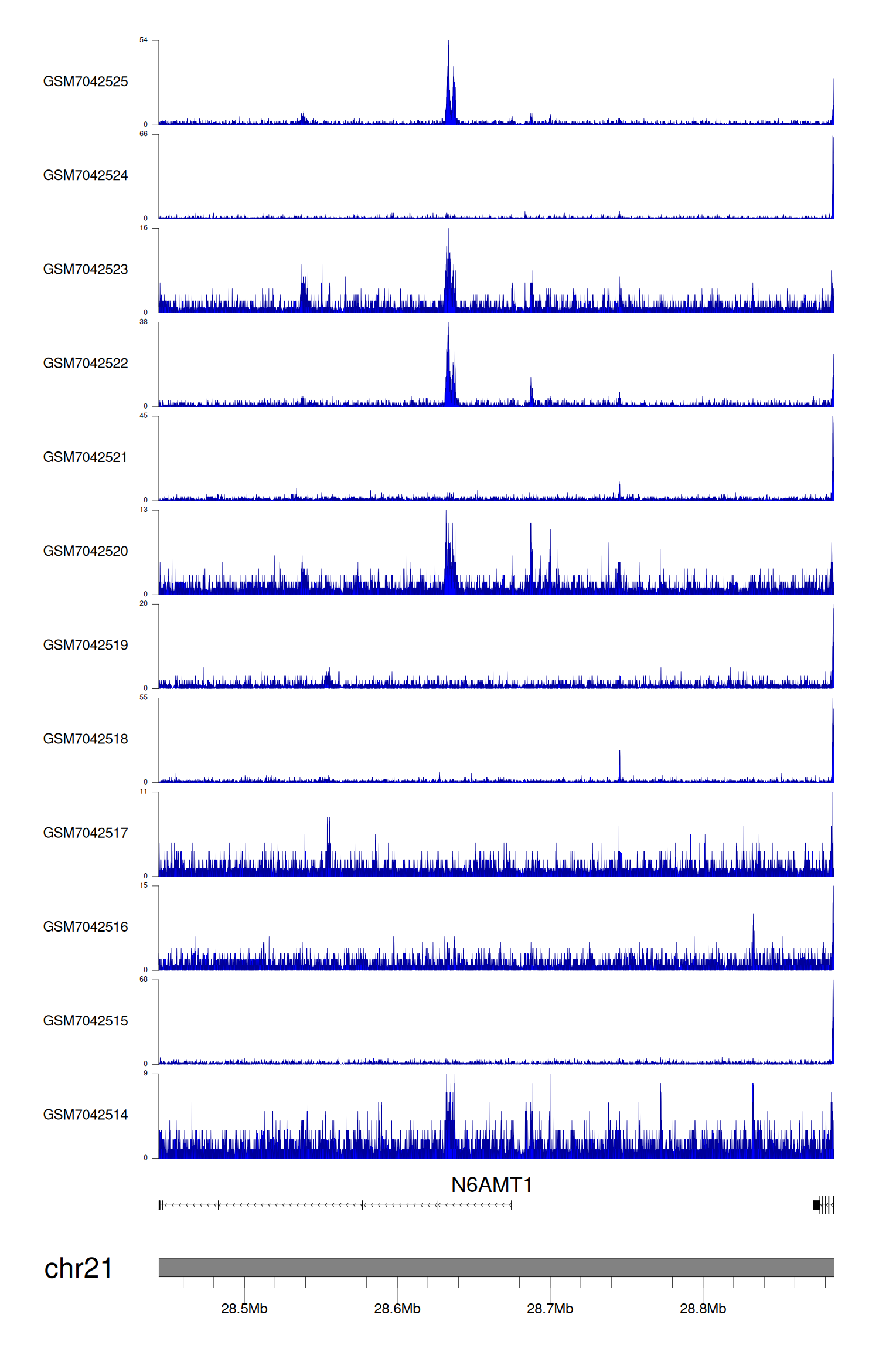 > Dataset: GSE198334 - N6AMT1 peak across samples