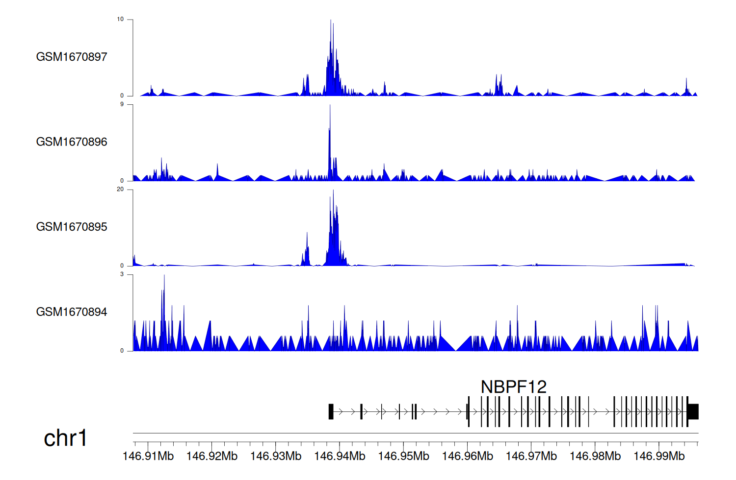 > Dataset: GSE270130 - NBPF12 peak across samples