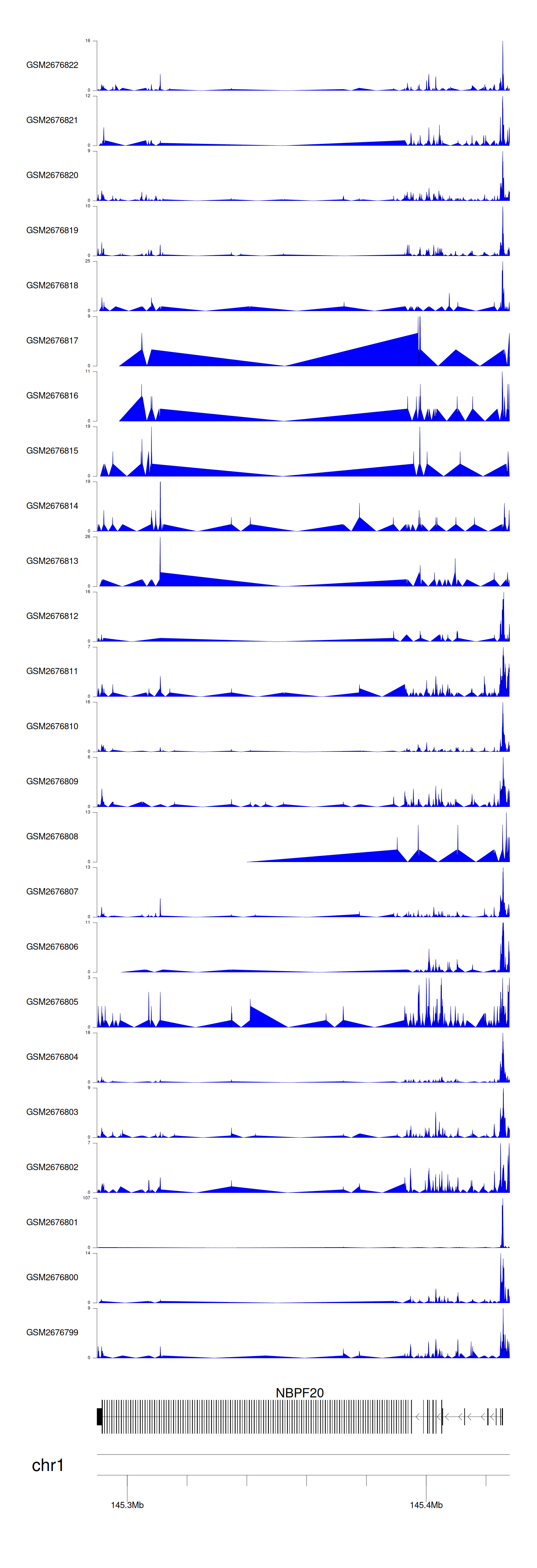 > Dataset: GSE100376 - NBPF20 peak across samples