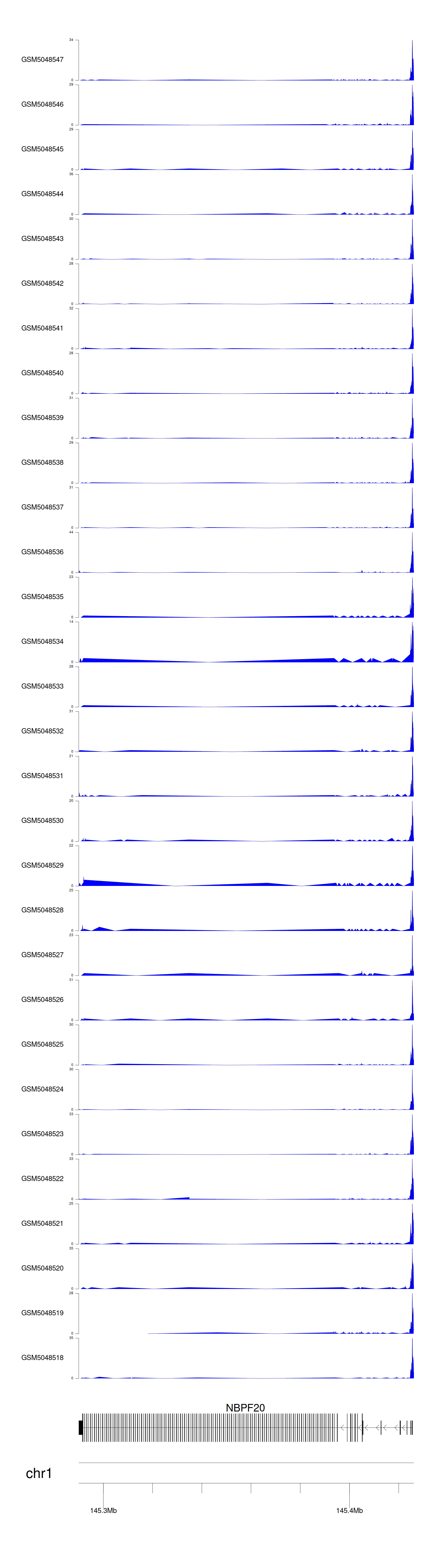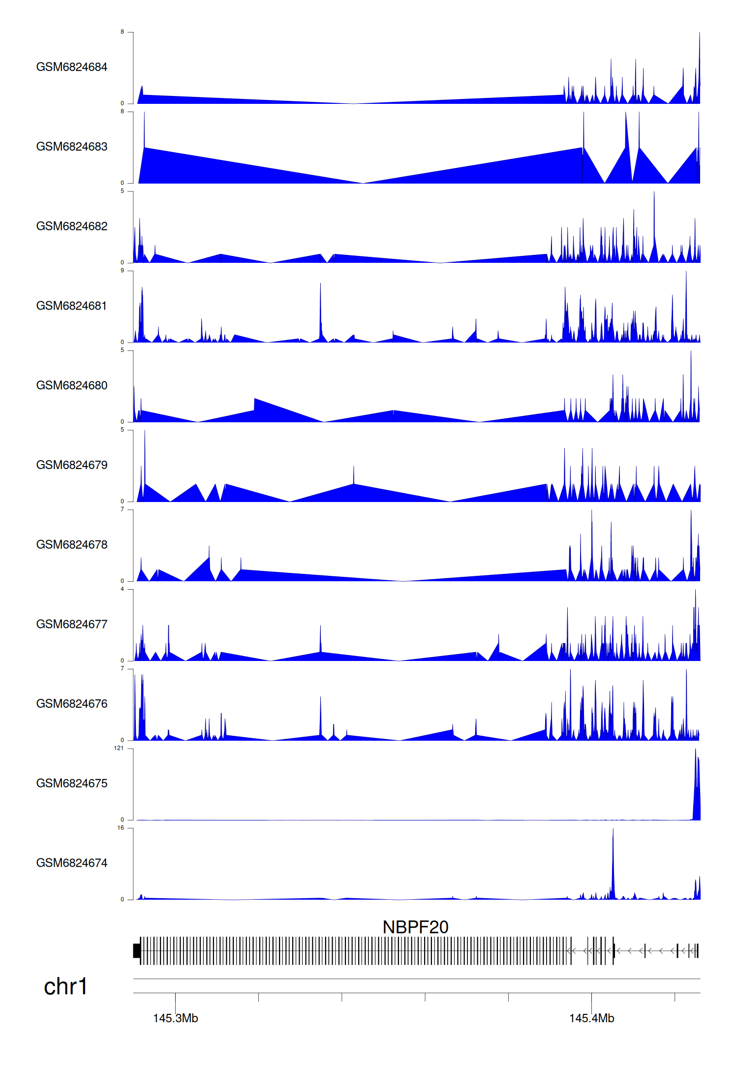 > Dataset: GSE144329 - NBPF20 peak across samples