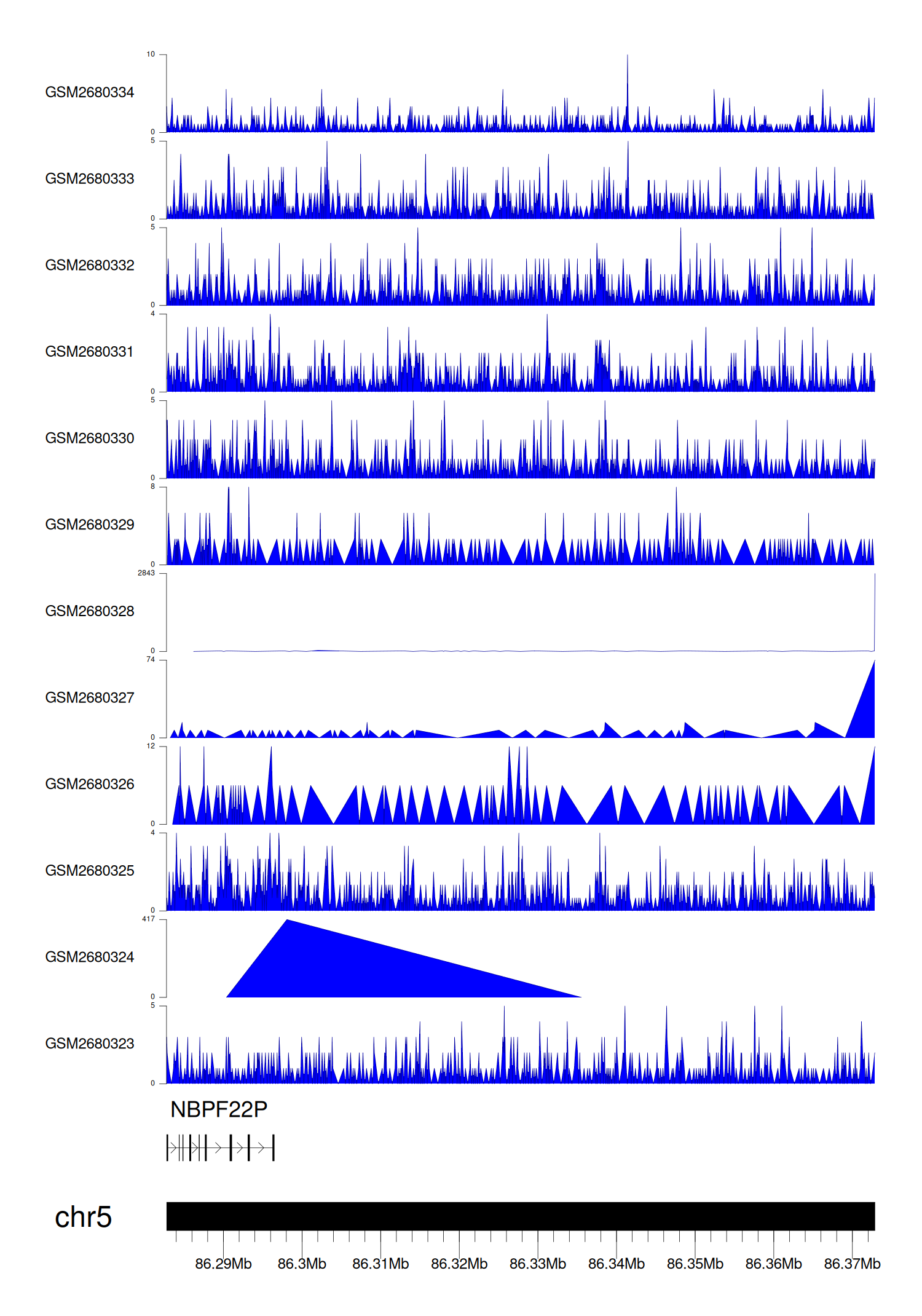 > Dataset: GSE100400 - NBPF22P peak across samples