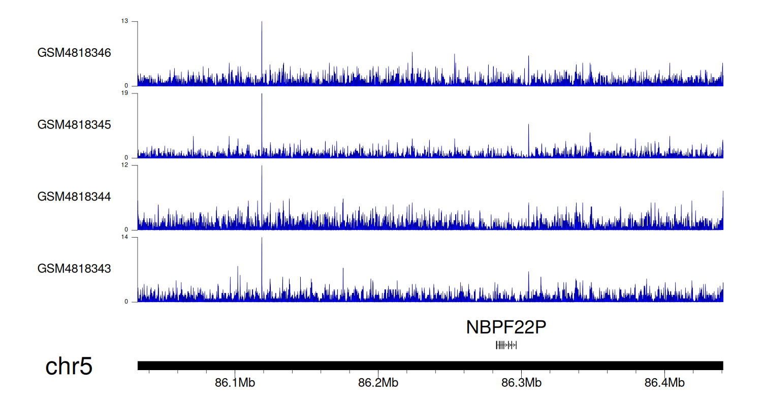 > Dataset: GSE131257 - NBPF22P peak across samples