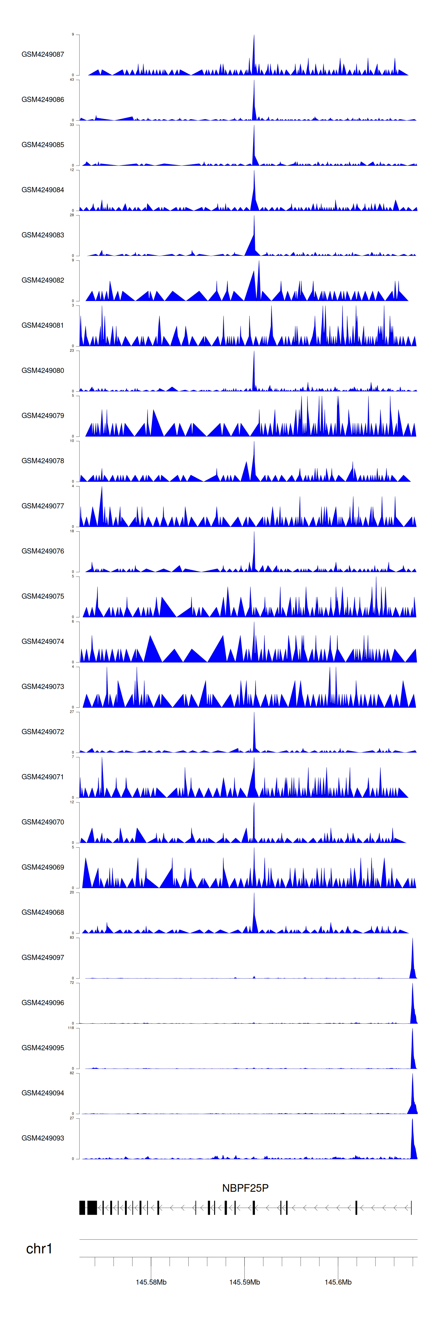 > Dataset: GSE143026 - NBPF25P peak across samples