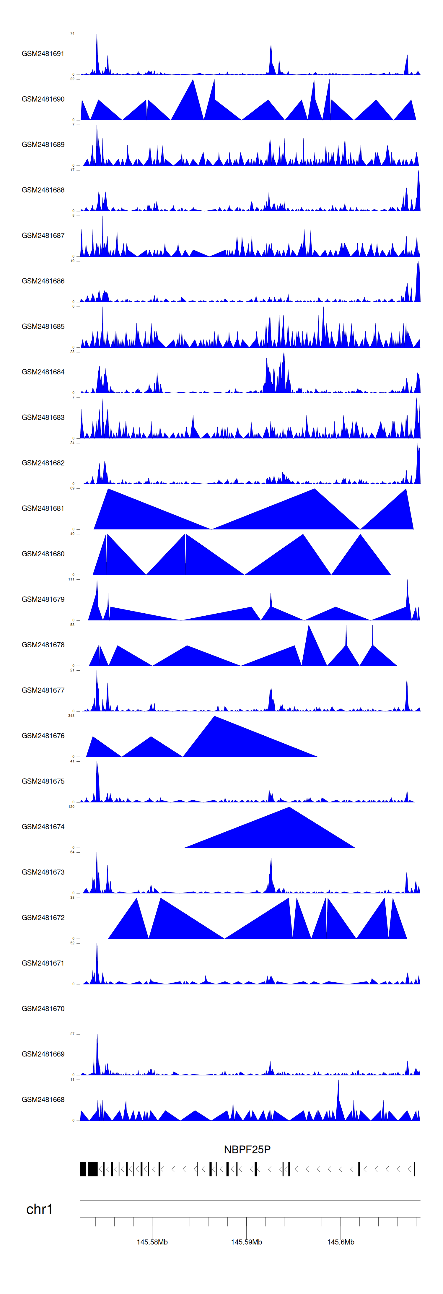 > Dataset: GSE94732 - NBPF25P peak across samples