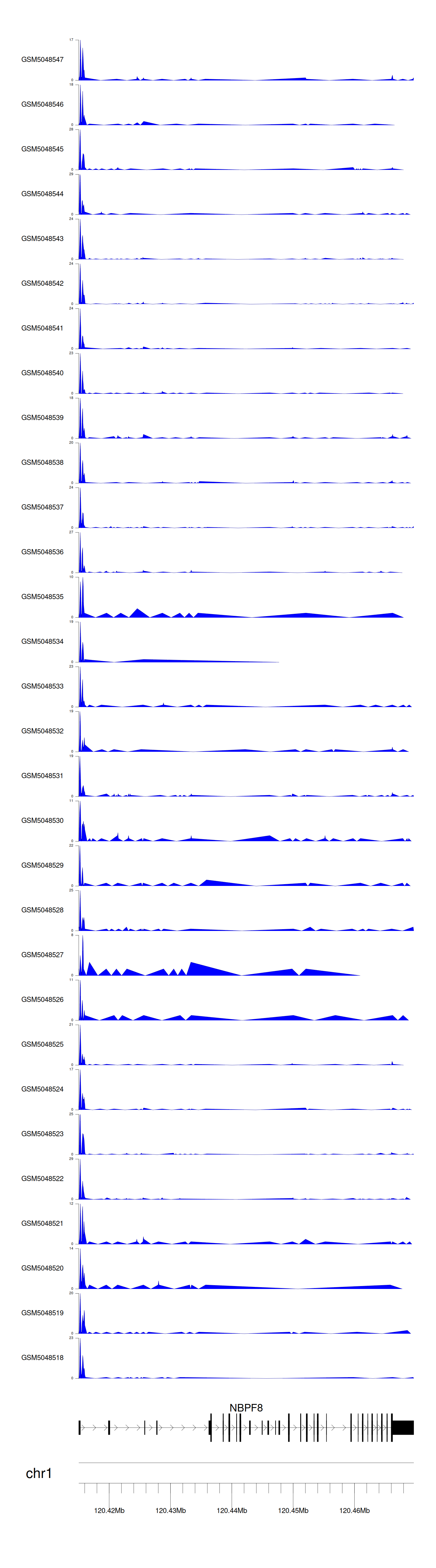 > Dataset: GSE144329 - NBPF8 peak across samples