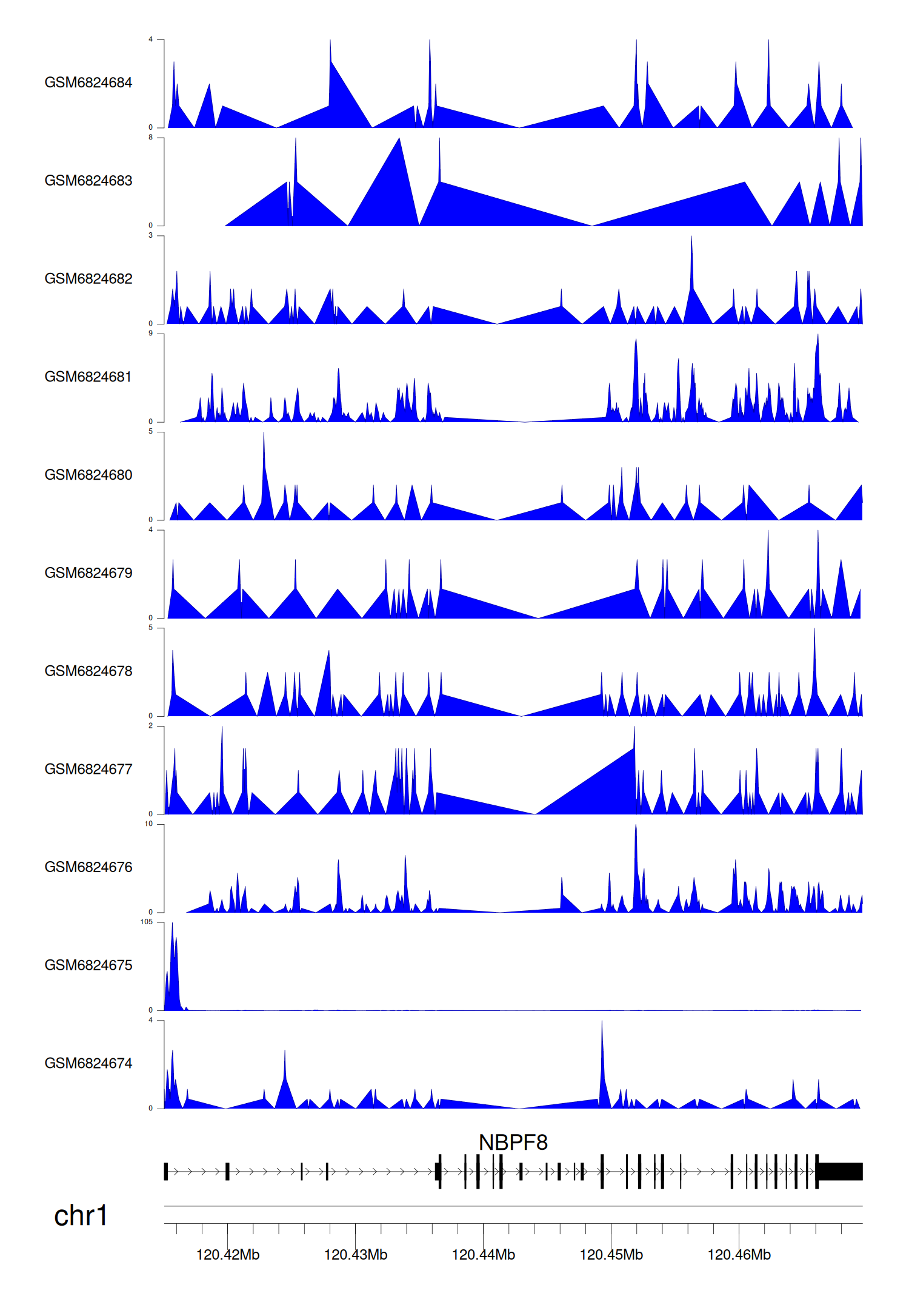 > Dataset: GSE220859 - NBPF8 peak across samples