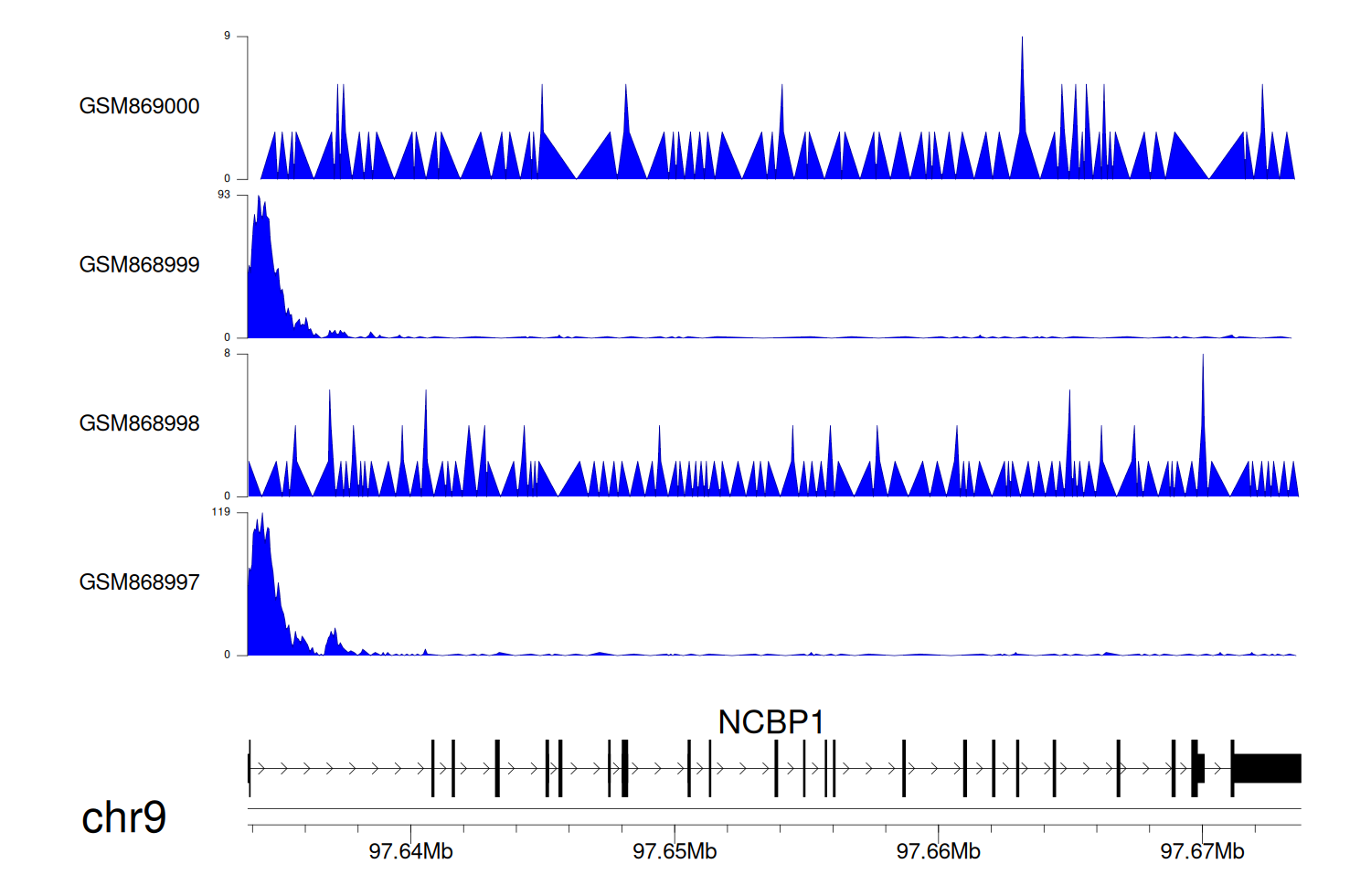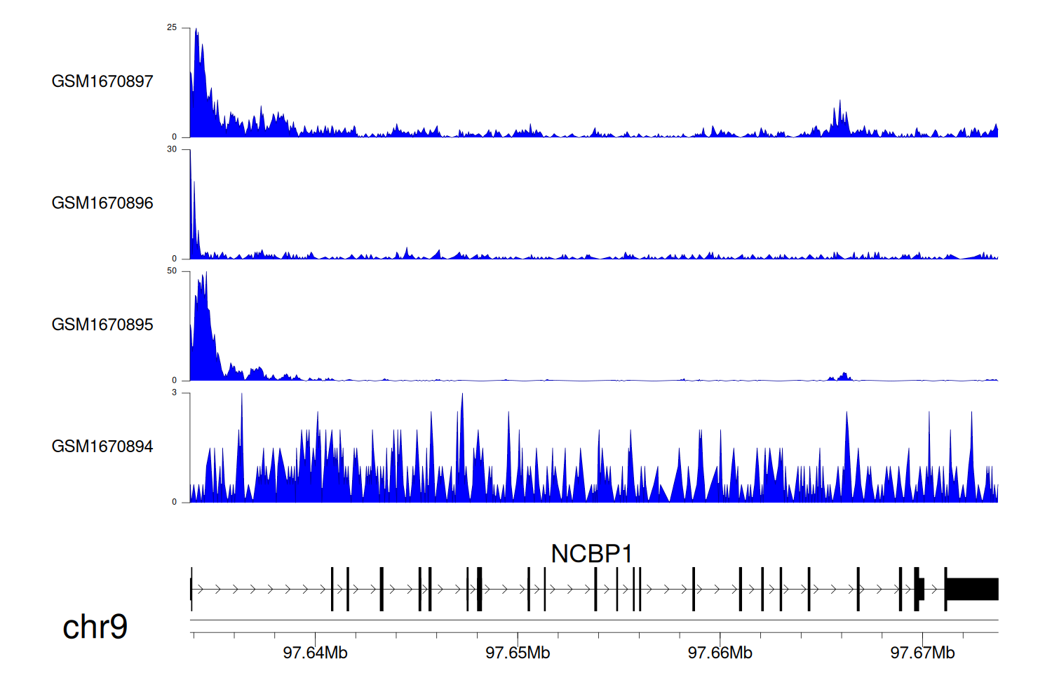 > Dataset: GSE68402 - NCBP1 peak across samples
