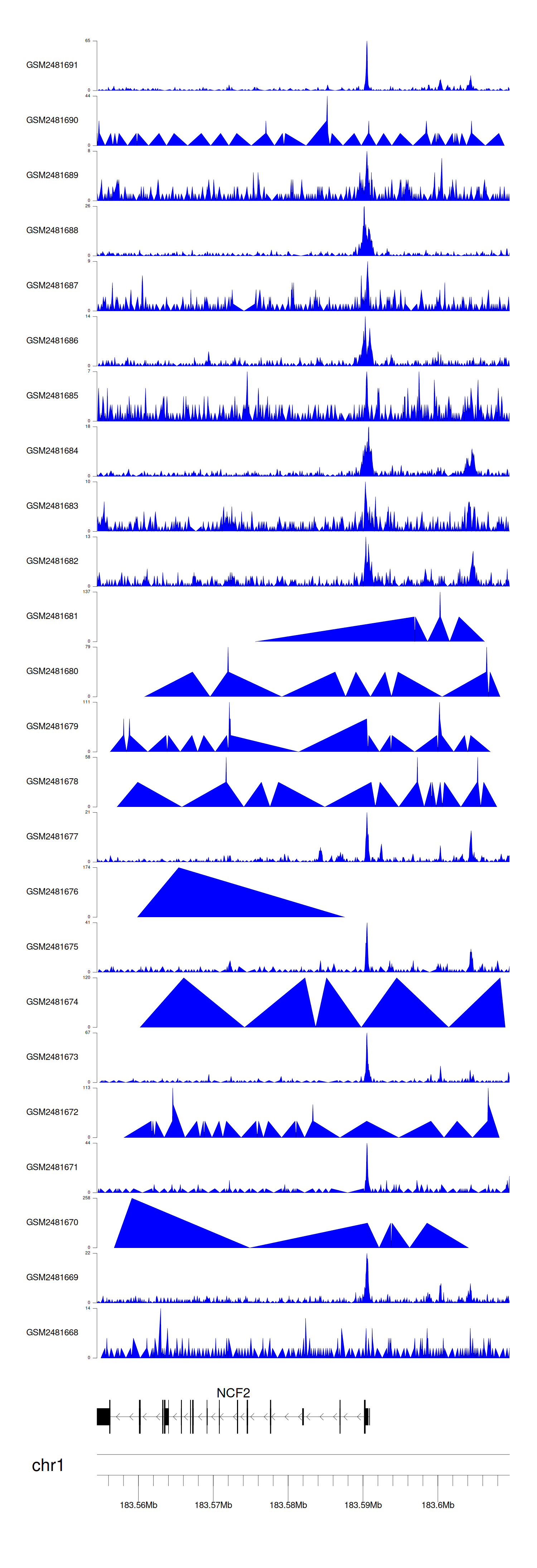 > Dataset: GSE94732 - NCF2 peak across samples