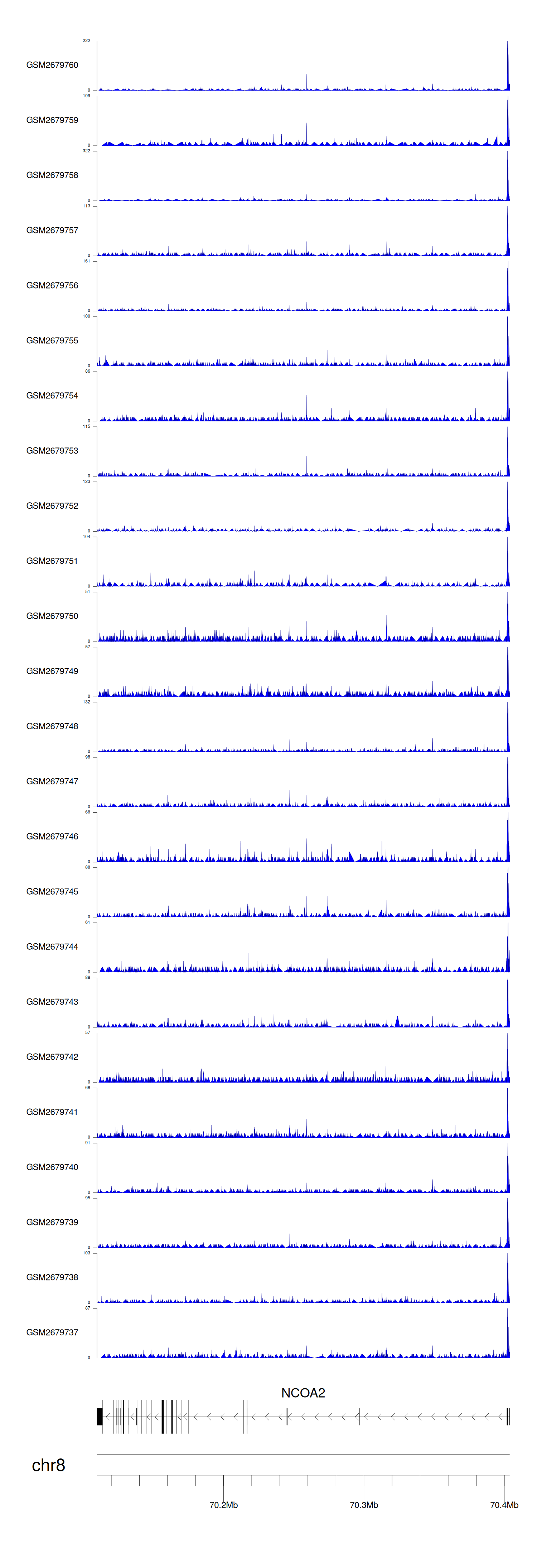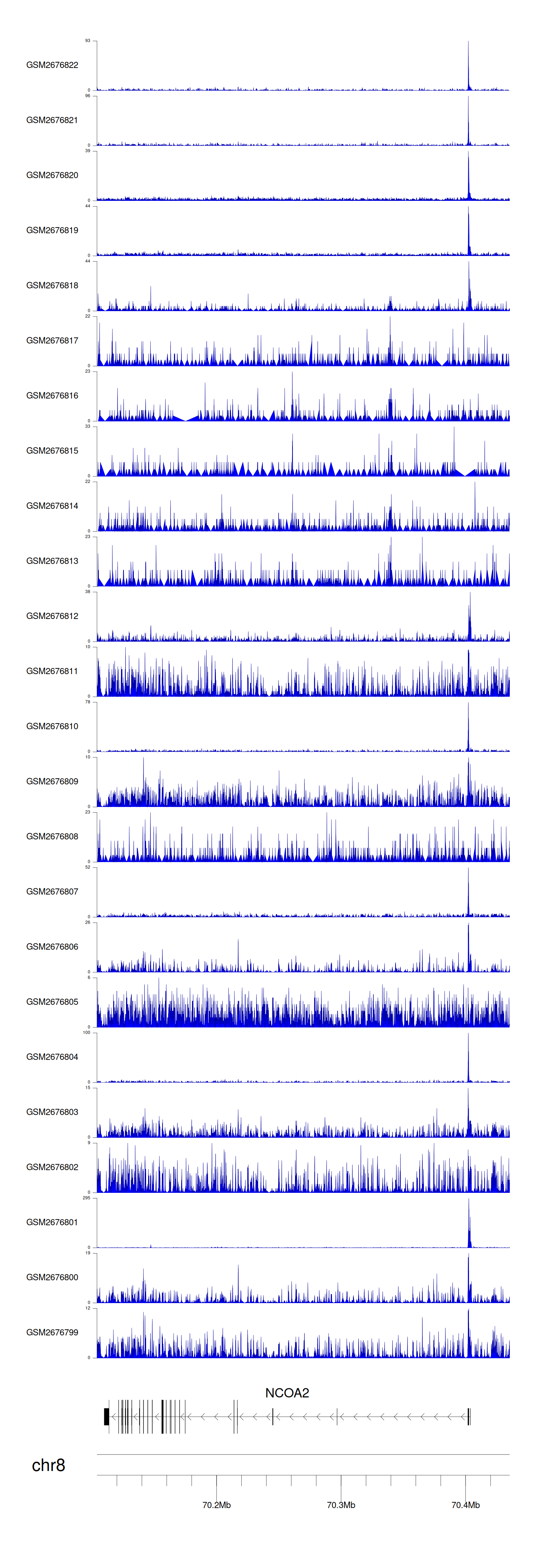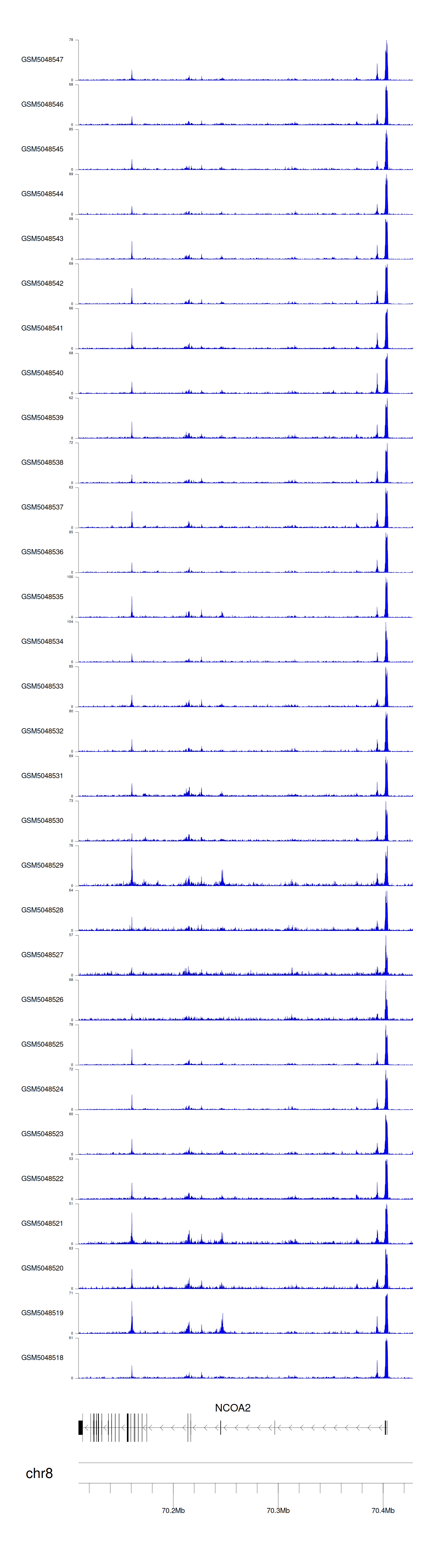 > Dataset: GSE100376 - NCOA2 peak across samples