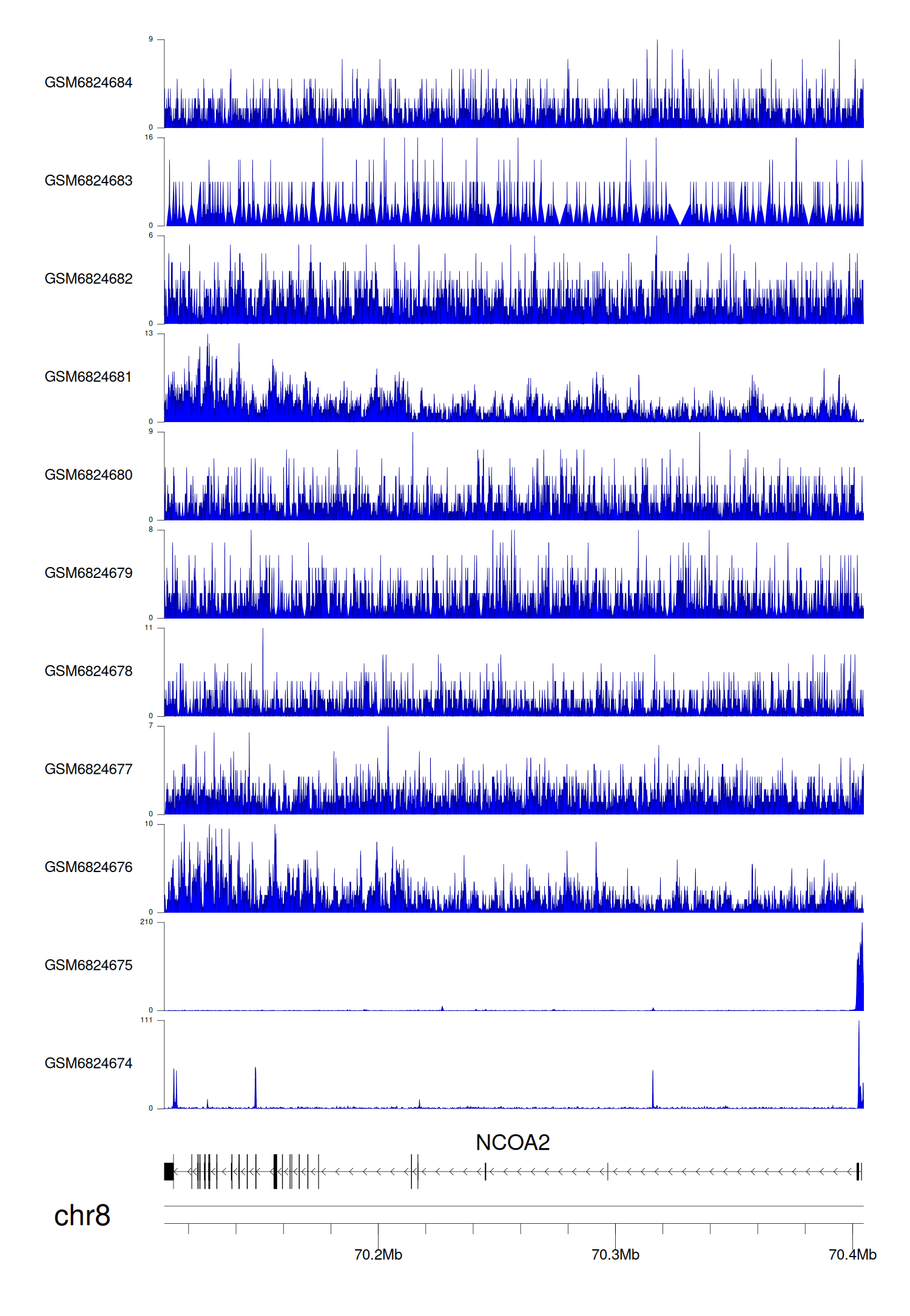 > Dataset: GSE144329 - NCOA2 peak across samples