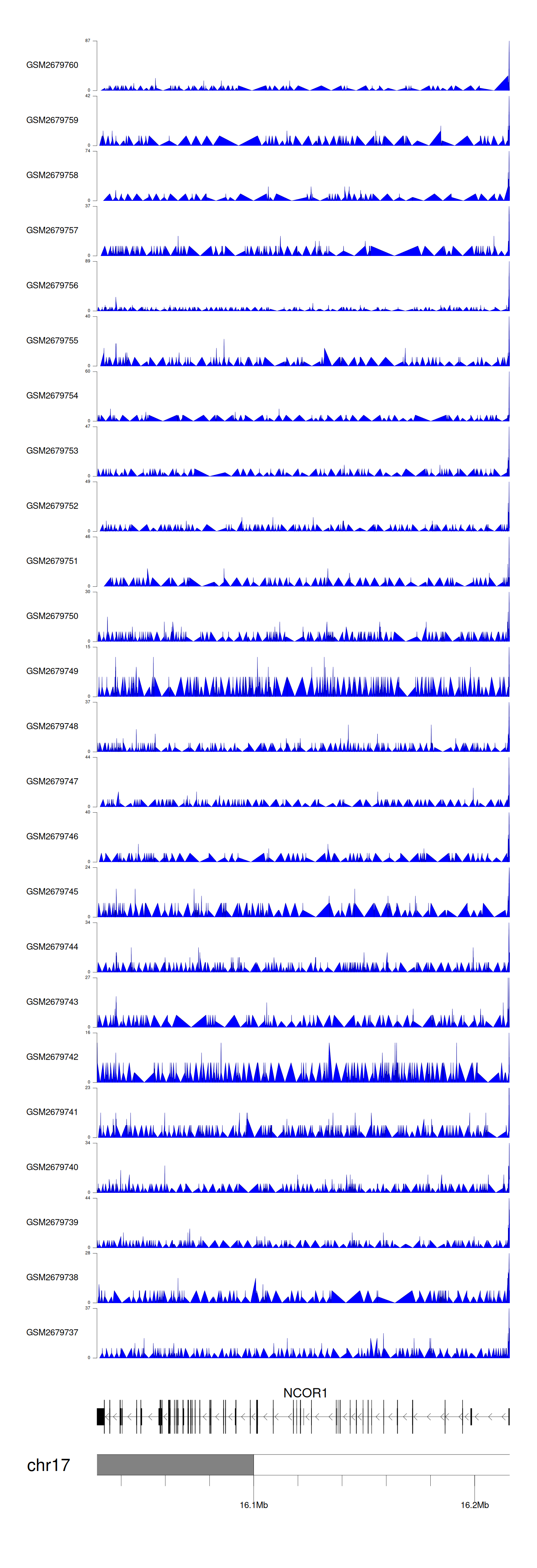 > Dataset: GSE30738 - NCOR1 peak across samples