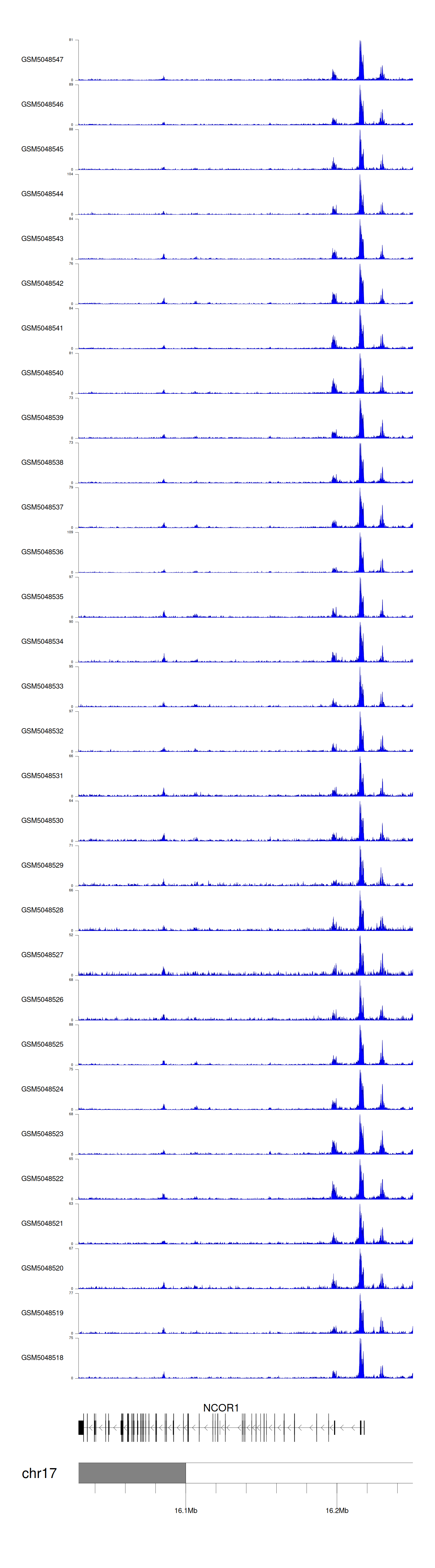 > Dataset: GSE165703 - NCOR1 peak across samples