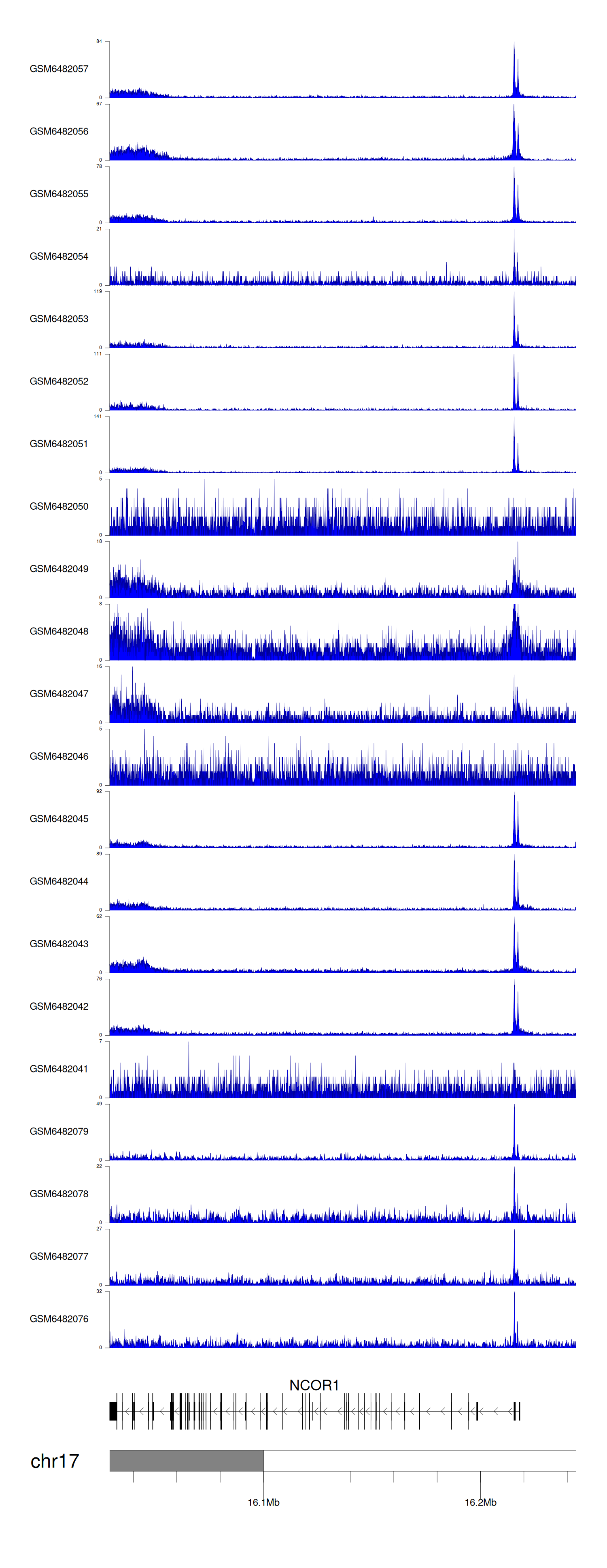 > Dataset: GSE165705 - NCOR1 peak across samples
