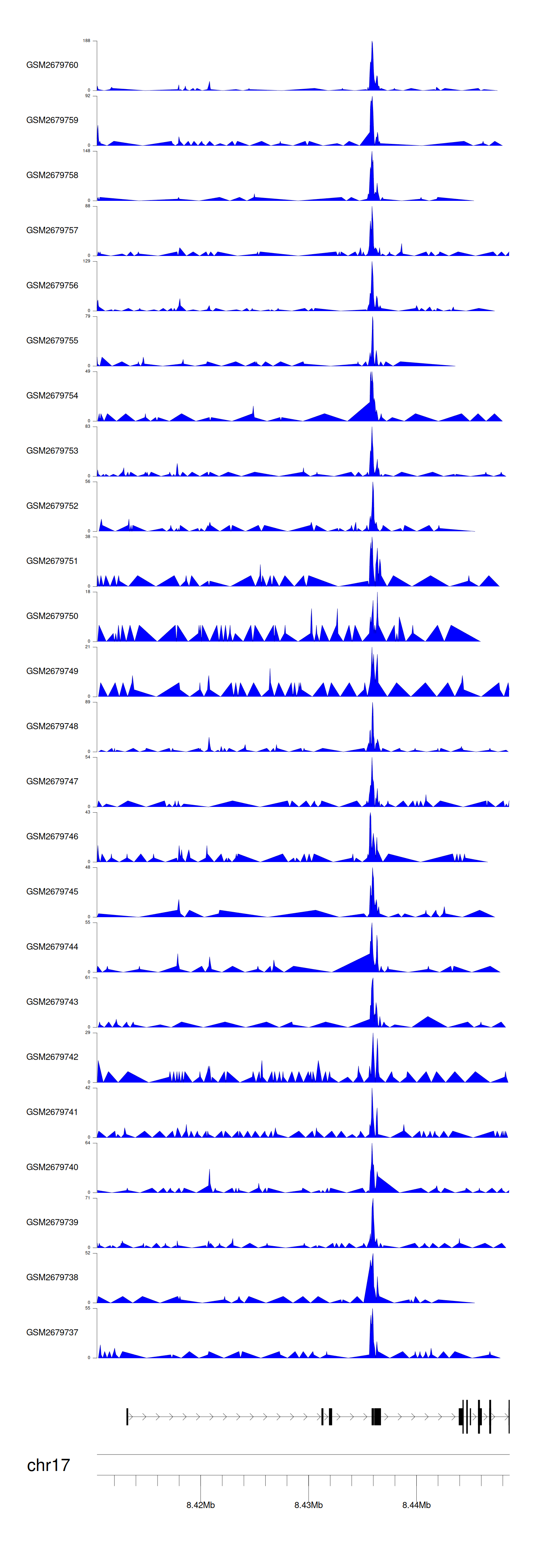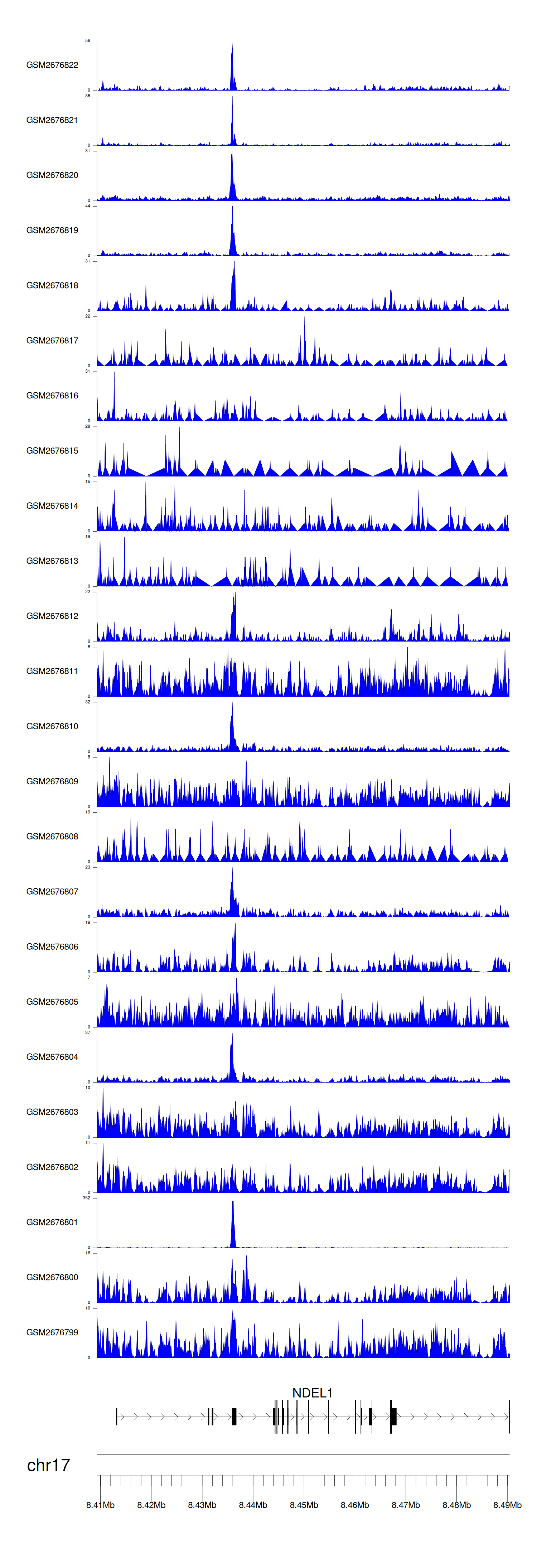 > Dataset: GSE100376 - NDEL1 peak across samples