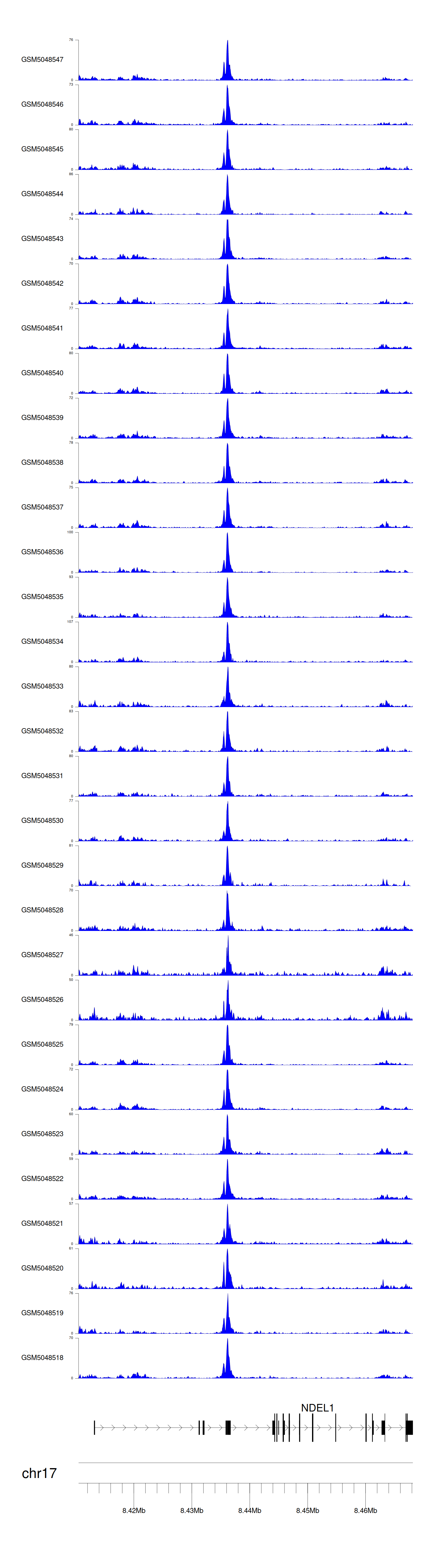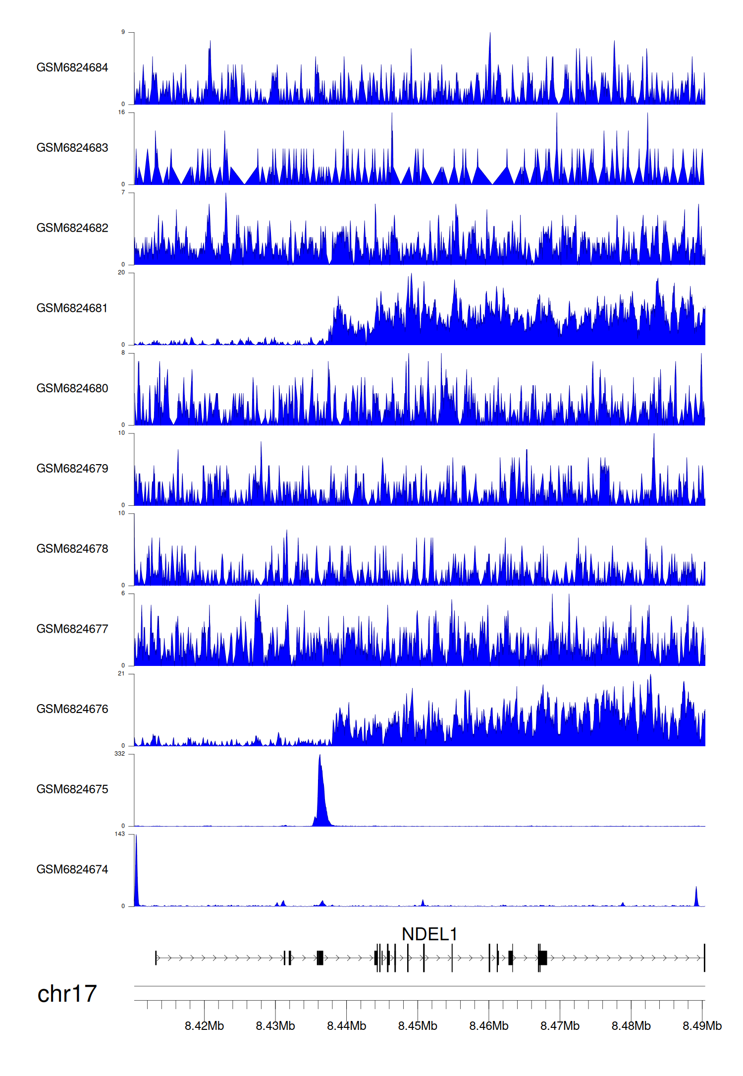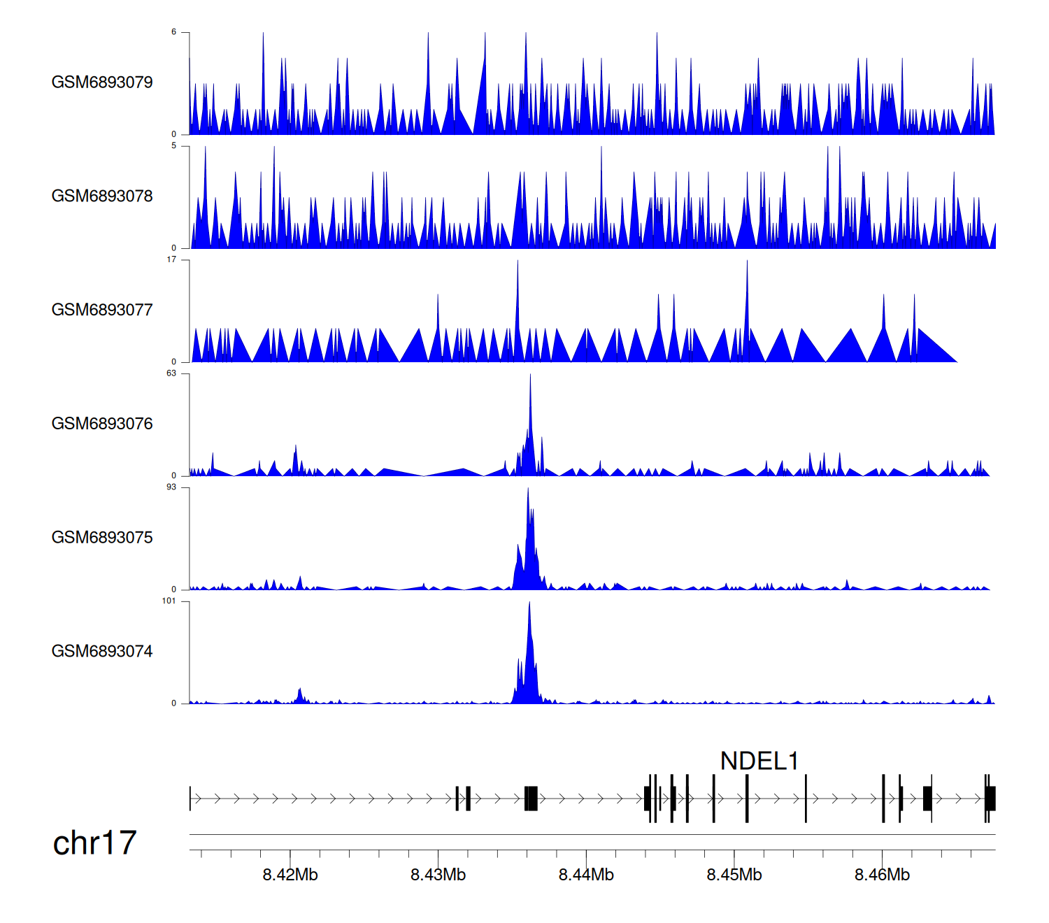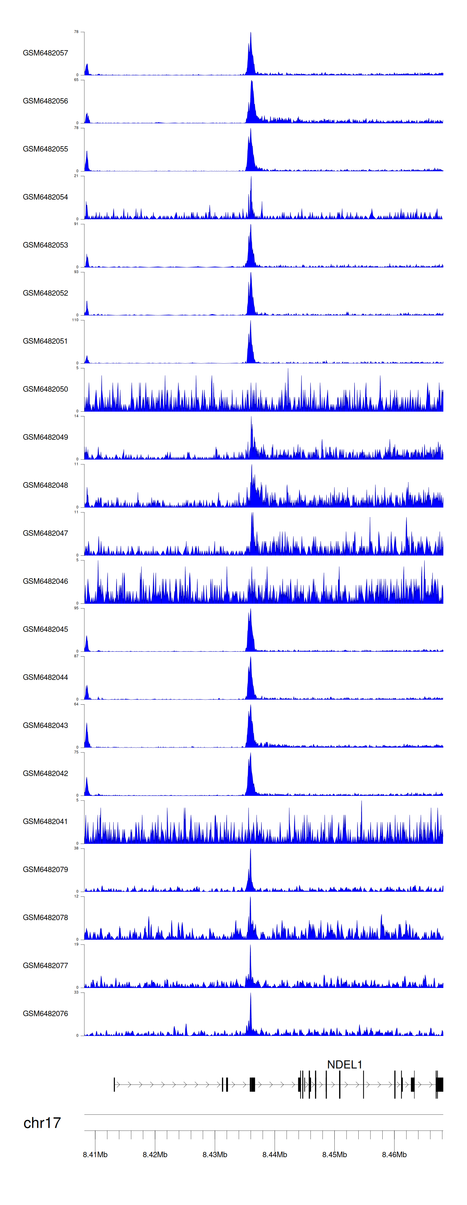 > Dataset: GSE165703 - NDEL1 peak across samples