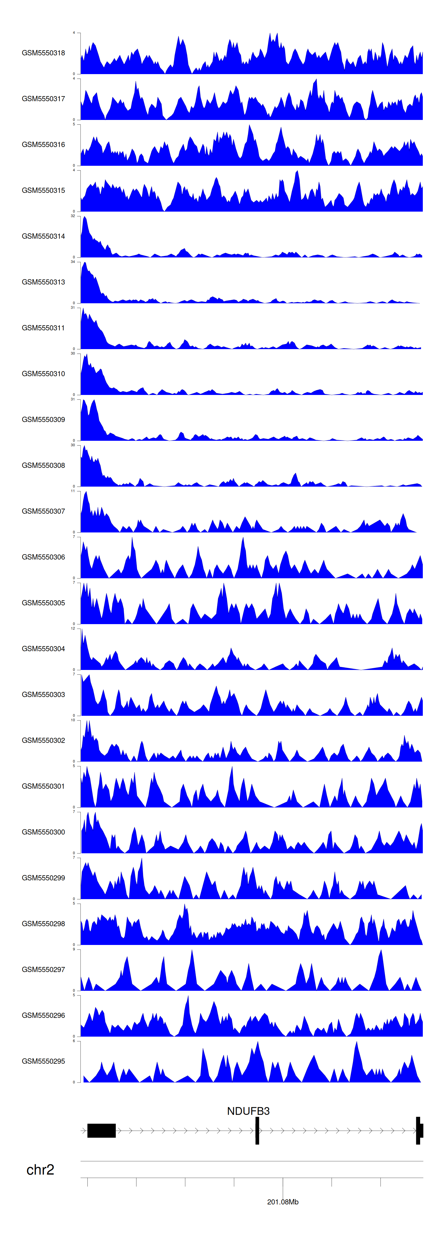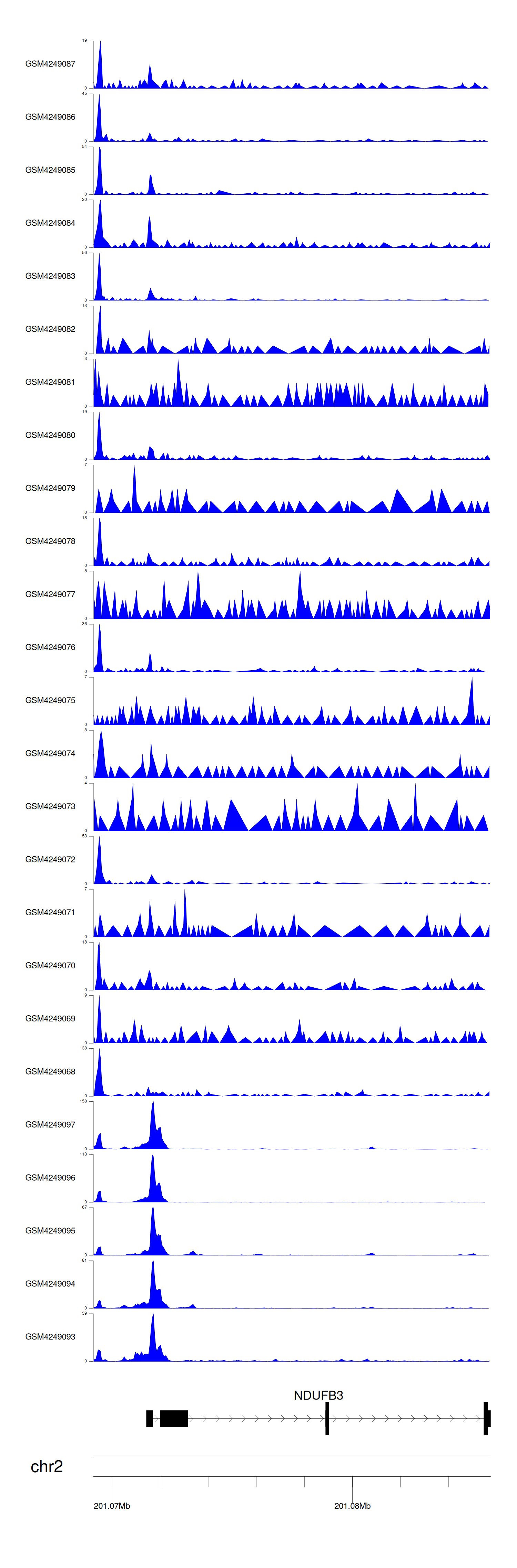 > Dataset: GSE143026 - NDUFB3 peak across samples