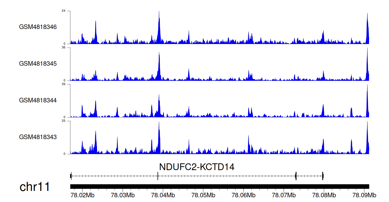 > Dataset: GSE270130 - NDUFC2-KCTD14 peak across samples