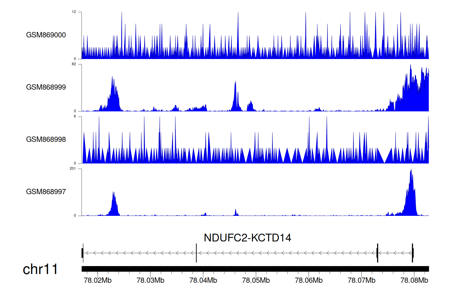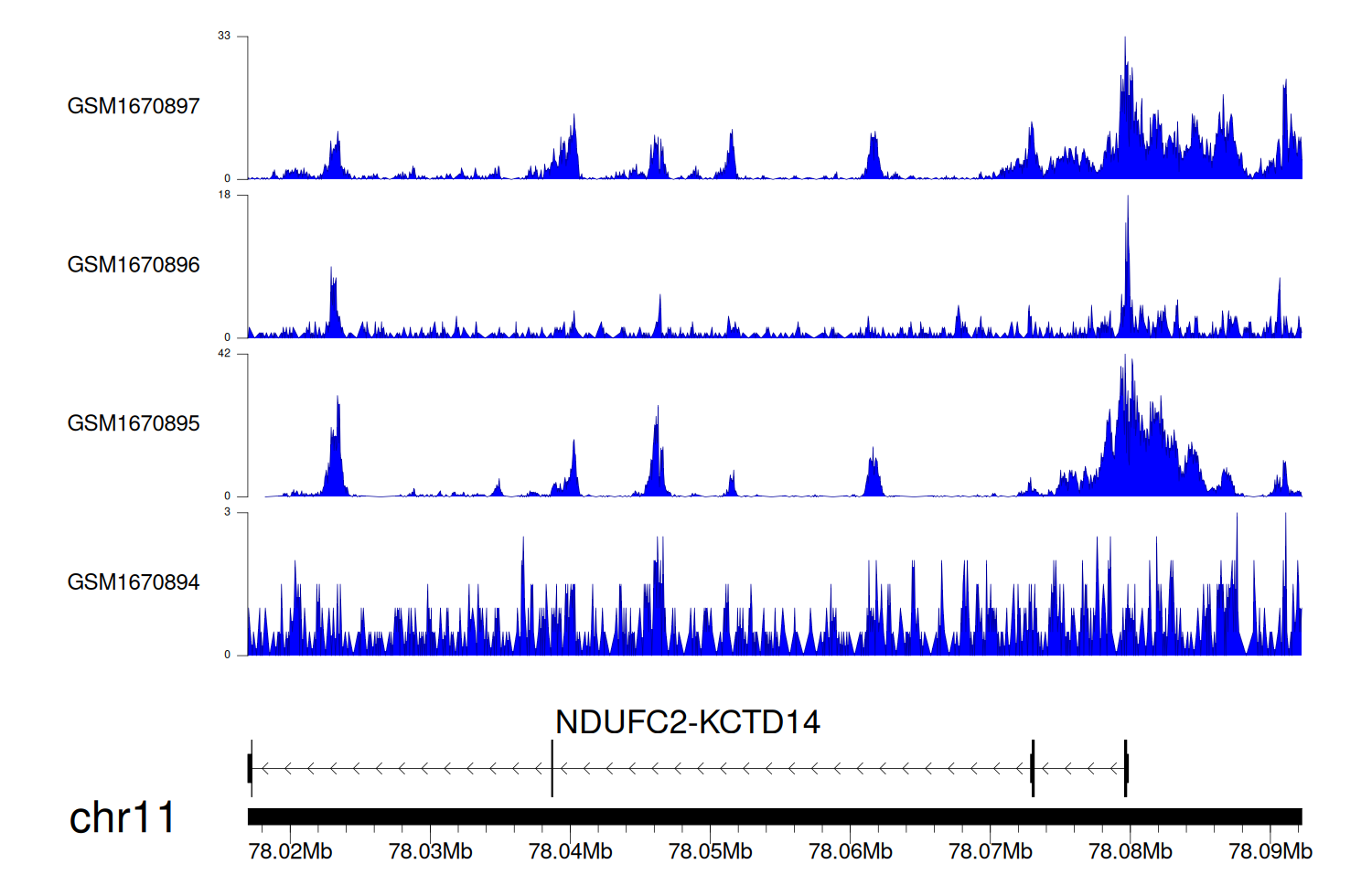 > Dataset: GSE68402 - NDUFC2-KCTD14 peak across samples
