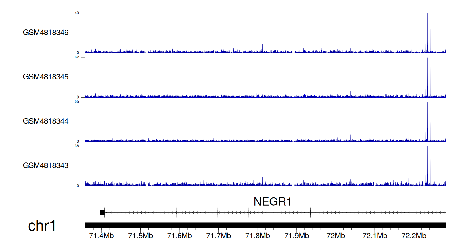 > Dataset: GSE131257 - NEGR1 peak across samples