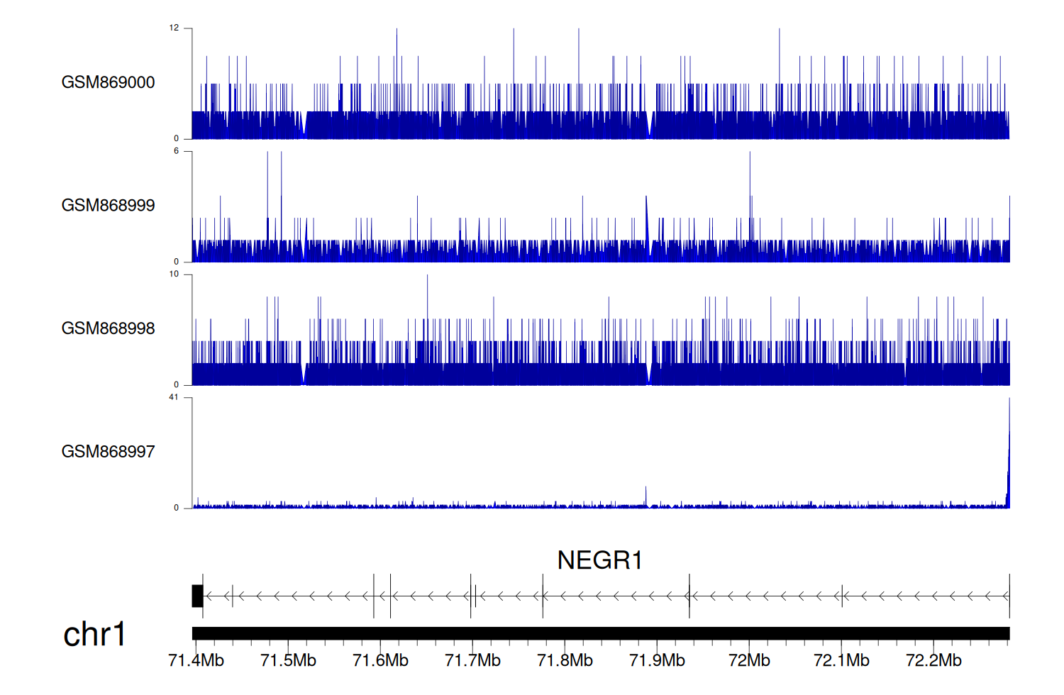> Dataset: GSE68402 - NEGR1 peak across samples