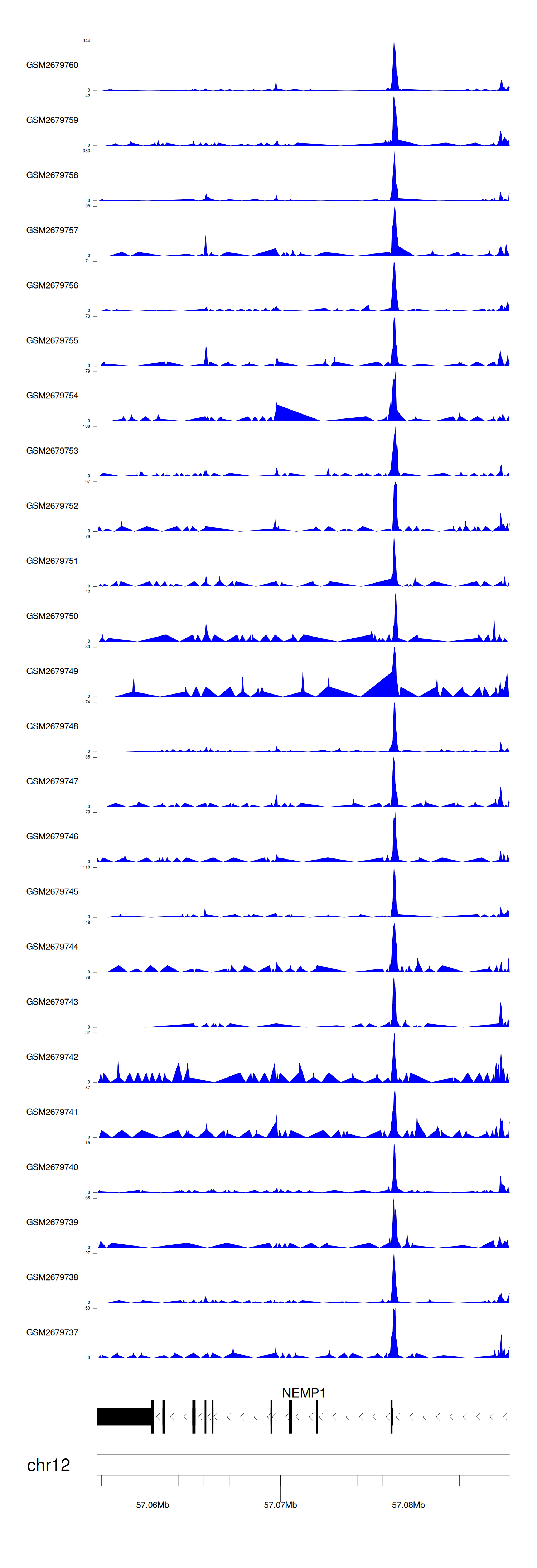 > Dataset: GSE144329 - NEMP1 peak across samples